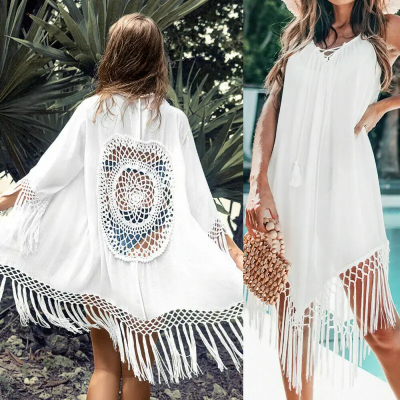 Новинка, пляжная одежда, накидка на купальник, женское кимоно, платье-саронг, туника, платья, купальный костюм, халат, летняя женская накидка на бикини с кисточками