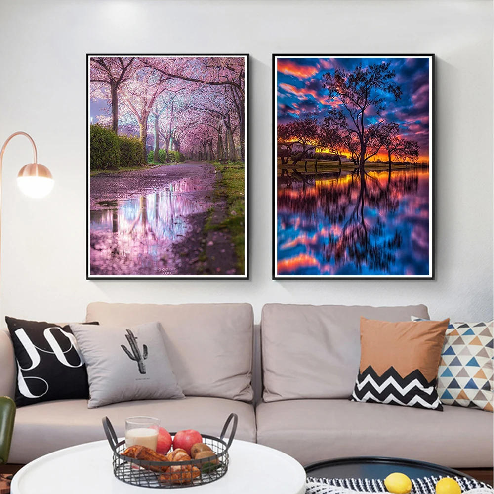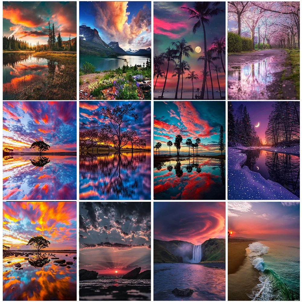 Алмазная 5D живопись сделай сам, пейзаж заката, алмазная вышивка, пейзаж, мозаика, картина, Набор для вышивки крестиком, украшение для дома, подарок