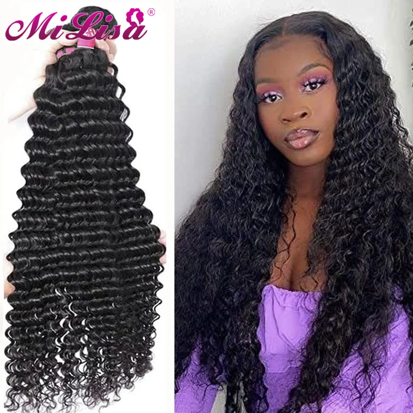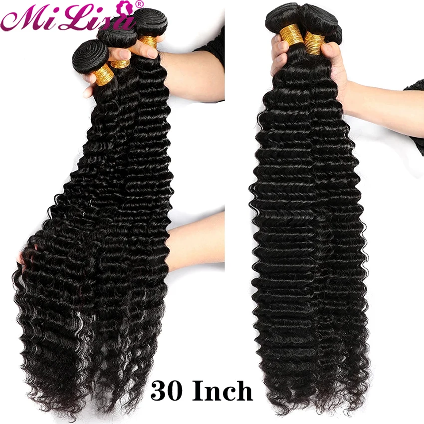 Глубокий кудрявый пучок волос Humain MILISA 100% настоящие человеческие волосы ткачество натуральные волосы для наращивания Tissage Bresiliens Cheveux 30 дюймов
