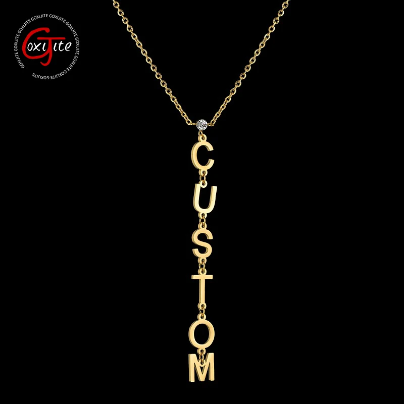 Goxijite персонализированный вертикальный алфавит, искусственный алфавит, нержавеющая сталь, индивидуальные буквы, табличка с именем, чокеры, Женские Ювелирные изделия, подарок