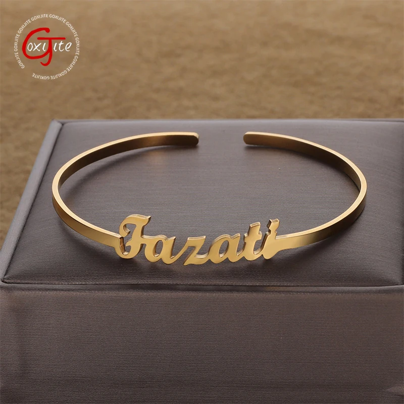 Goxijite Индивидуальный Женский браслет из нержавеющей стали с именем, персонализированный 3 мм Золотой инициальное имя, Открытый браслет, браслеты, памятный подарок