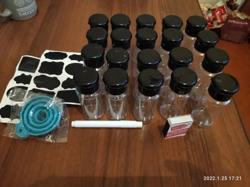 Отличные баночки. Доставка в Москву в указанный срок, довольно быстро с учётом нового года! Баночки пластиковые, матовые наклейки, маркер, силиконовая воронка. Упаковано в пупырку, пришло все целое.