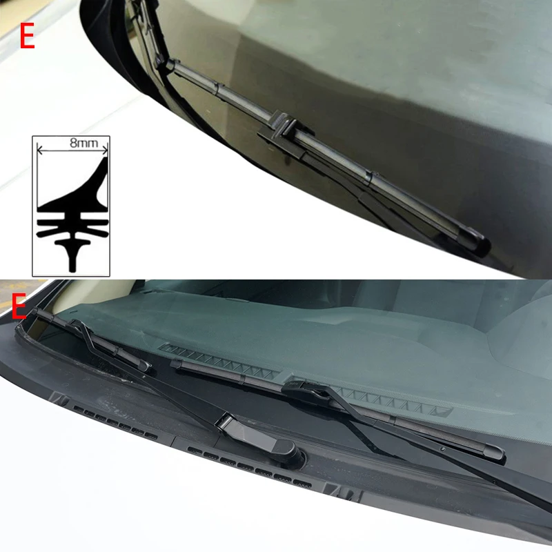 Тип E:Пряжка стеклоочистителя (есть защелкивающаяся кольцевая пряжка в середине стеклоочистителя)Ширина резины 8 мм