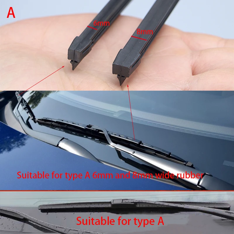 Тип C:Трехсекционный стеклоочиститель (стеклоочиститель имеет три секции)Резиновая ширина 8,5 мм
