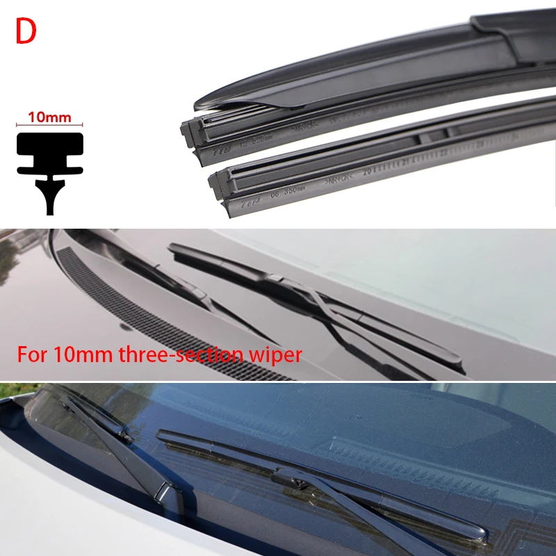Тип D:Трехсекционный стеклоочиститель (стеклоочиститель имеет три секции)Ширина резины 10 мм