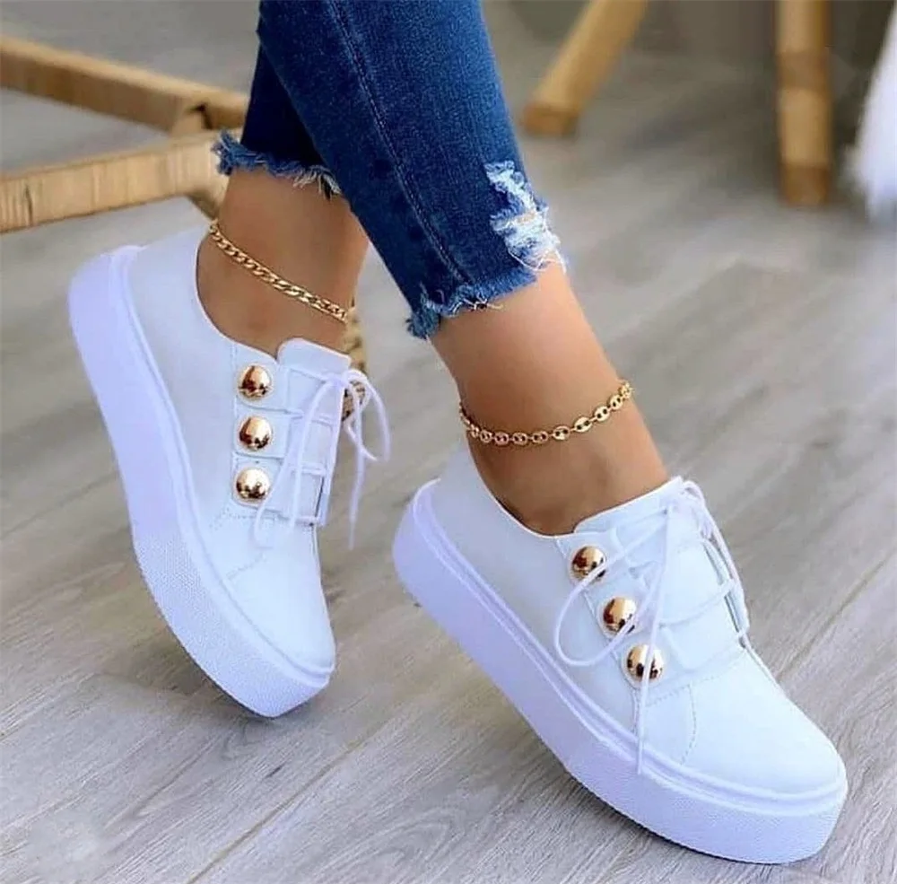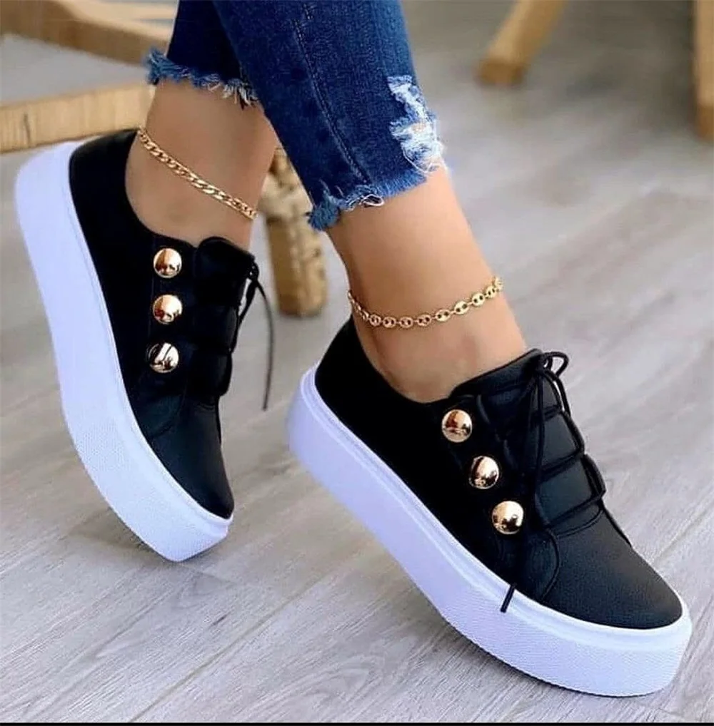 Кроссовки женские с двойной пряжкой, Вулканизированная подошва, Спортивная повседневная обувь, круглый носок, на осень