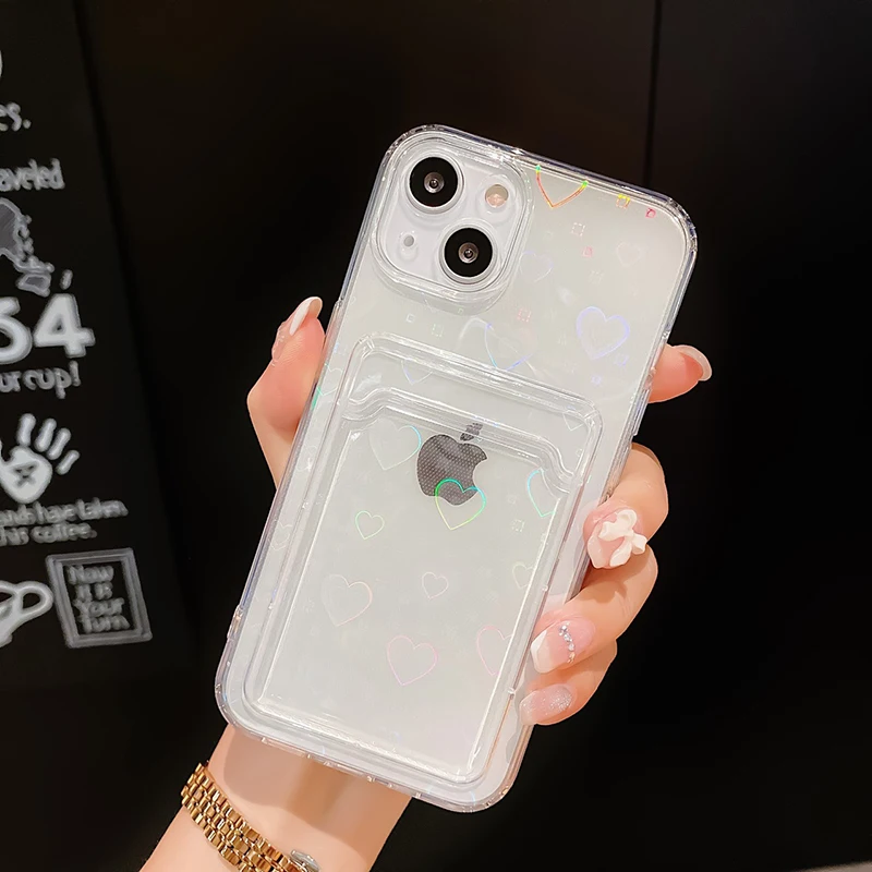 Feature 1Card package Fashion Gradient Laser Love Heart Pattern Clear Phone Case