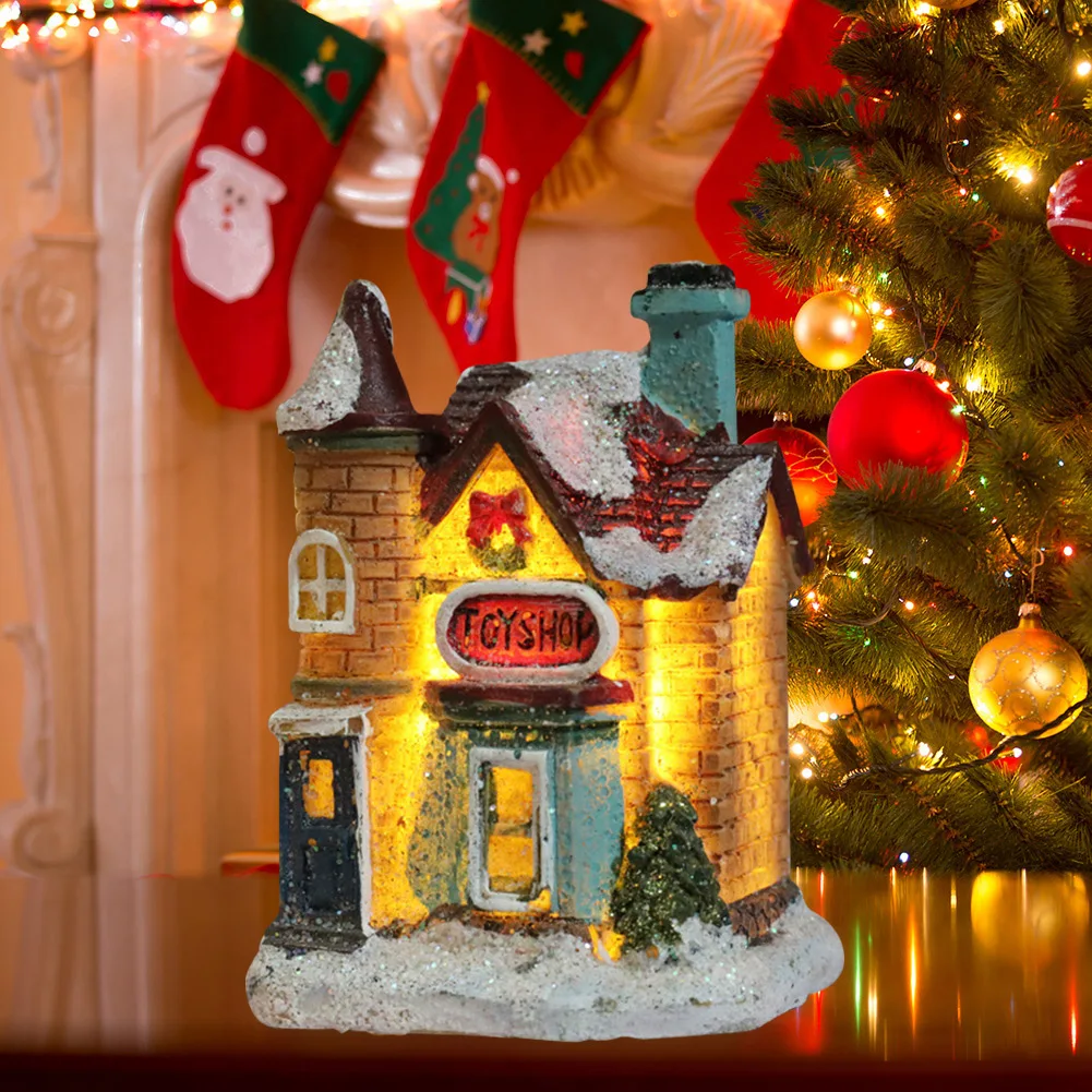 Рождественский деревенский дом скульптура со светильник кой Смола д...