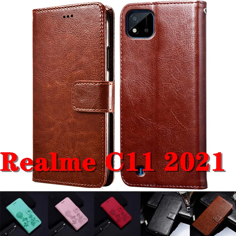 Чехол-бумажник для Realme C11 2021, кожаный чехол-книжка с откидной крышкой и подставкой, чехол для Realme C 11, Магнитный чехол для карт, чехол, чехол, сумка