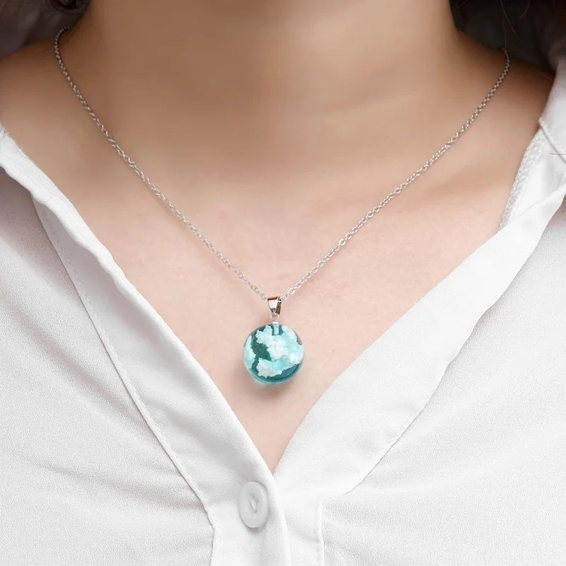 Ожерелье с подвеской в виде шара из смолы с голубым небом и белым о...