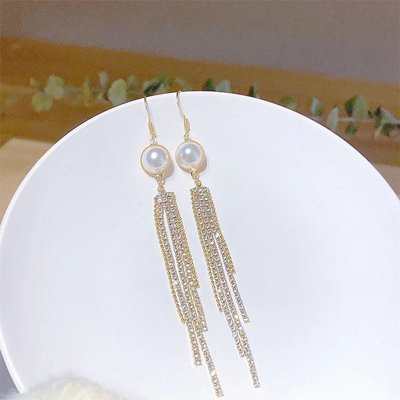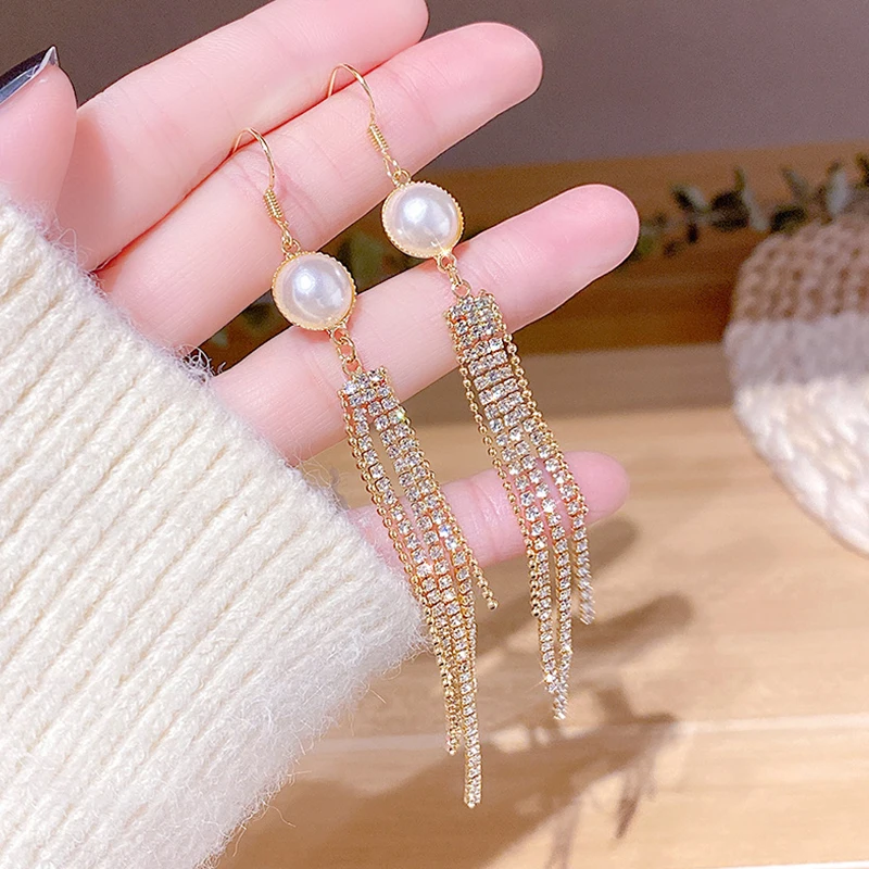 Новые модные жемчужные длинные серьги, женские серьги-подвески в виде Луны, звезды, цветов, стразы, свадебные серьги, серьги