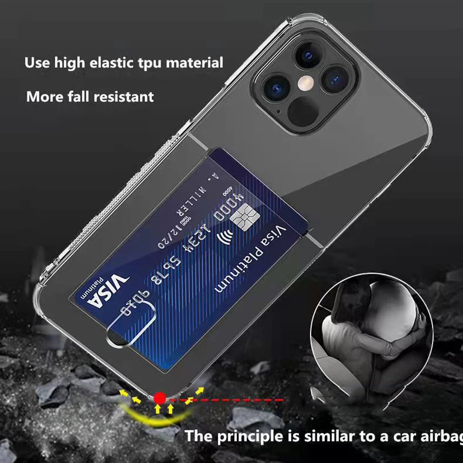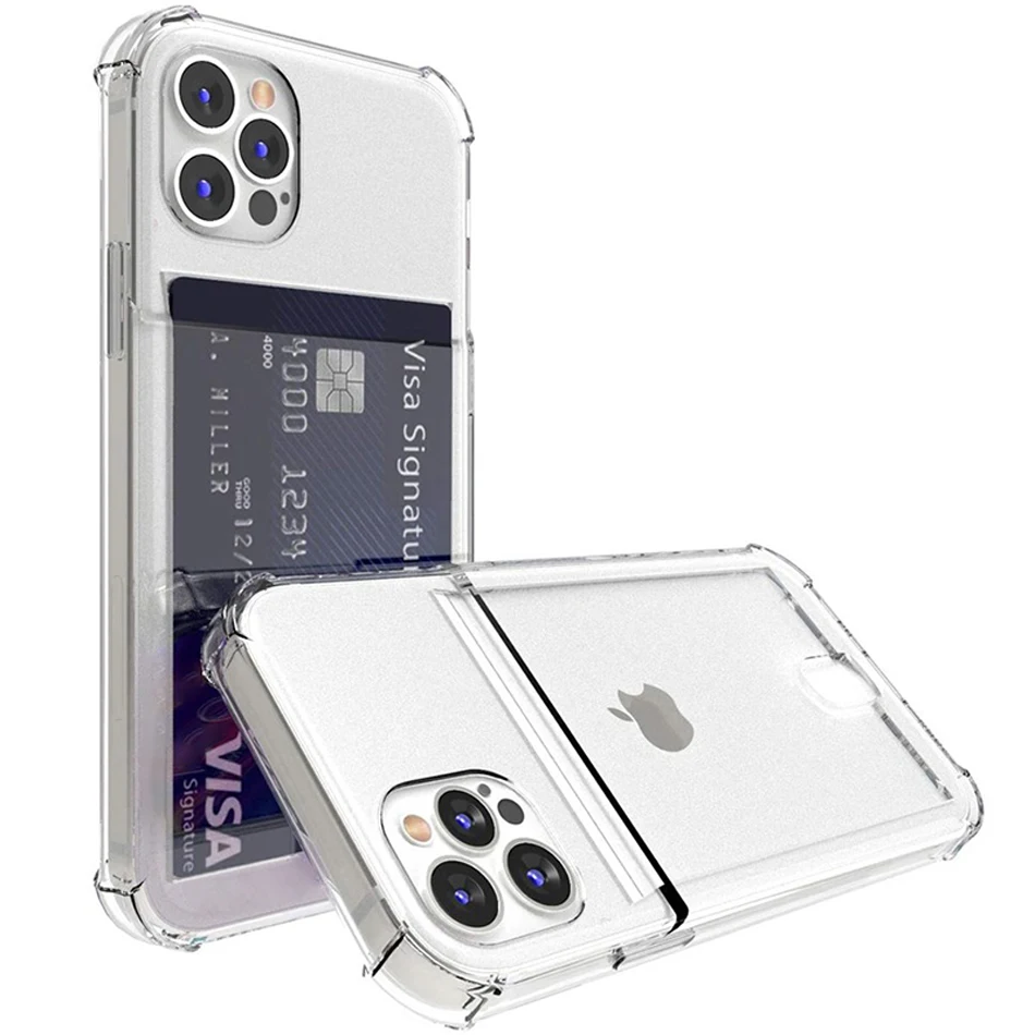 Прозрачный чехол с держателем для карт для iPhone 13 12 Pro Max, мягкий амортизирующий чехол из ТПУ для iPhone 12 13 Mini 11 Pro Max X XS 8 7 6