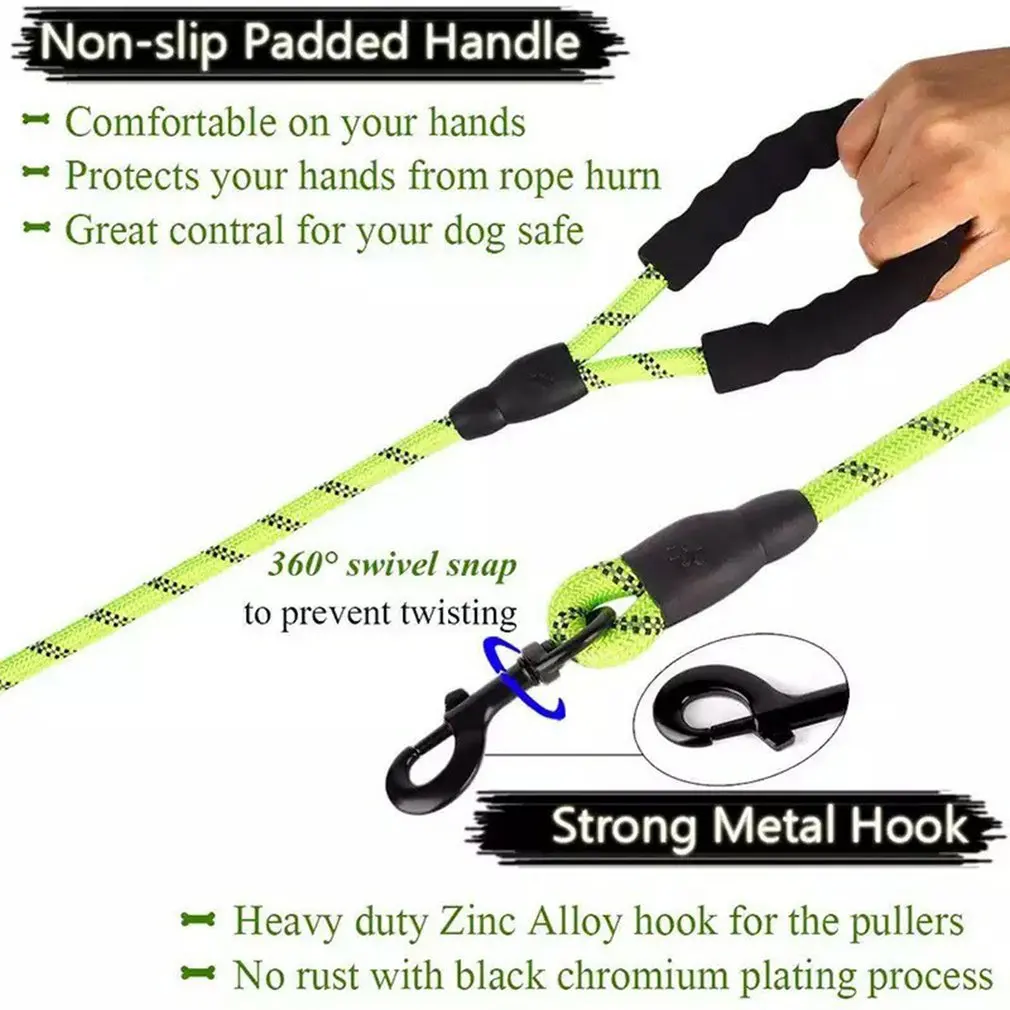 ПЭТ Светоотражающий поводок сильный поводок для собак длиной 1,5 м с удобные мягкие ручки для тяжелых условий эксплуатации обучение прочная нейлоновая оплетка продлевает веревка поводки для собак
