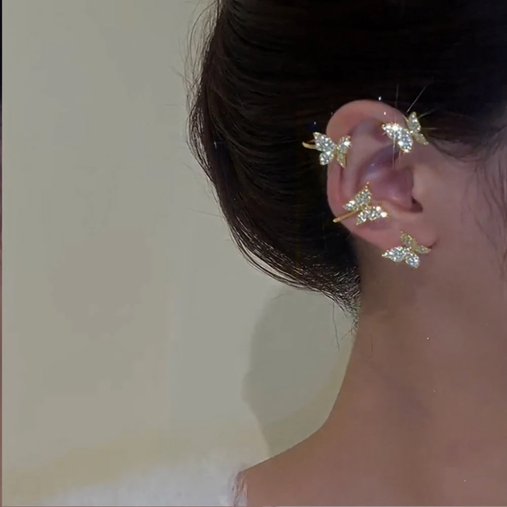 Зажим для ушей с фианитом в виде бабочки, зажим для ушей для женщин...