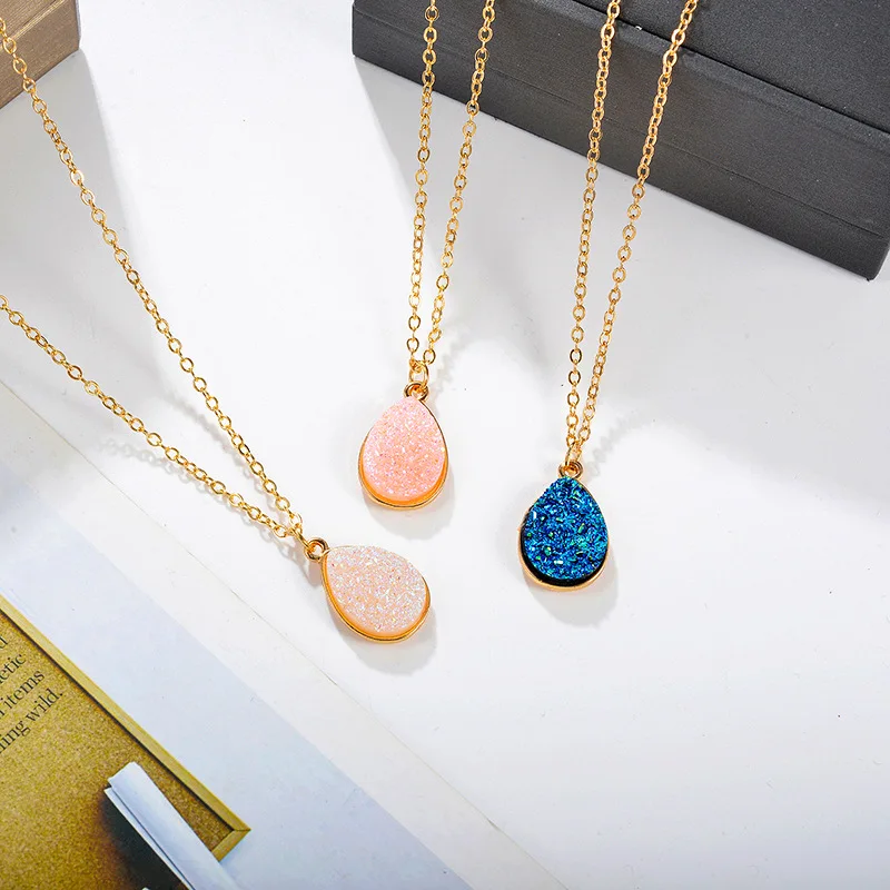 Модное ожерелье золотого цвета с подвеской в виде капли воды для женщин, поддельная Друза, Хрустальный каплевидный чокер, ожерелье, цепочка, ювелирные изделия