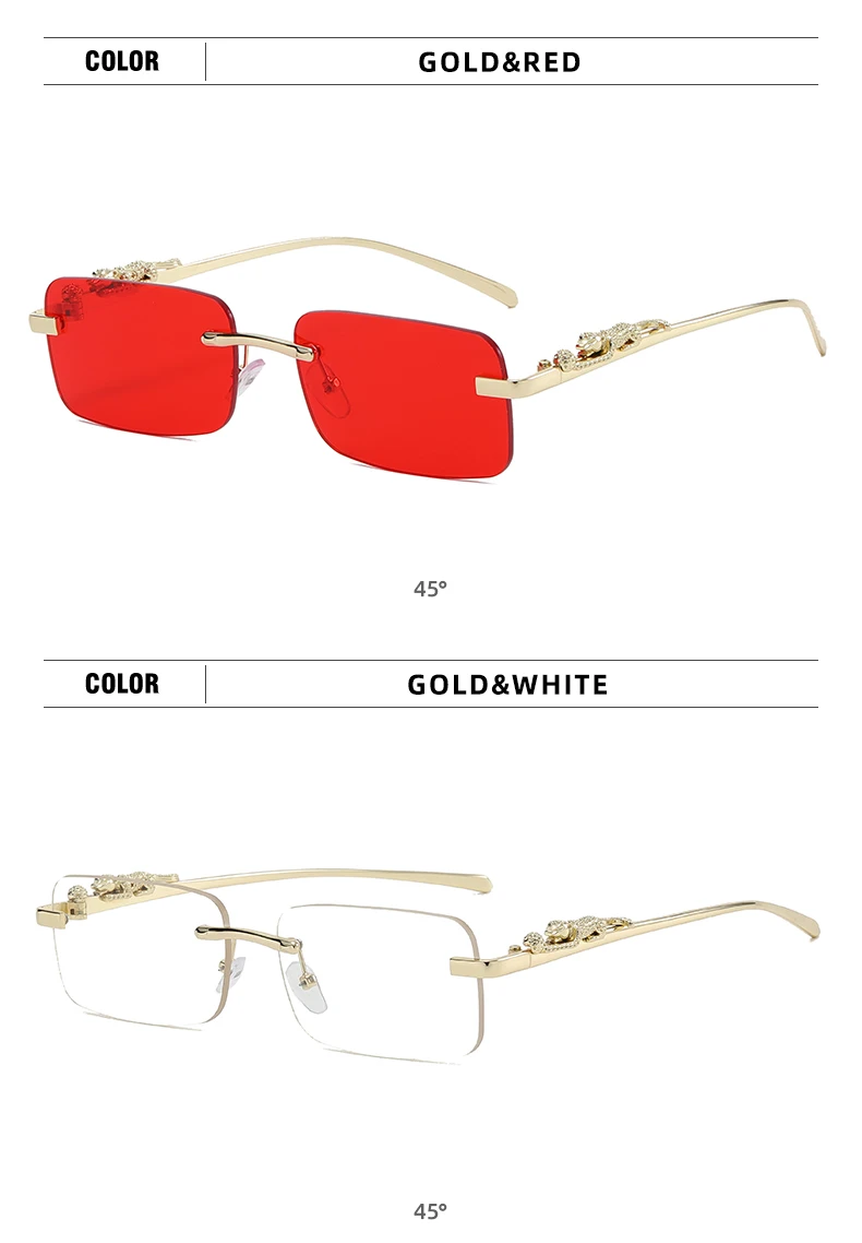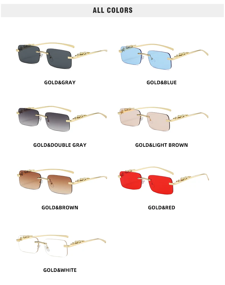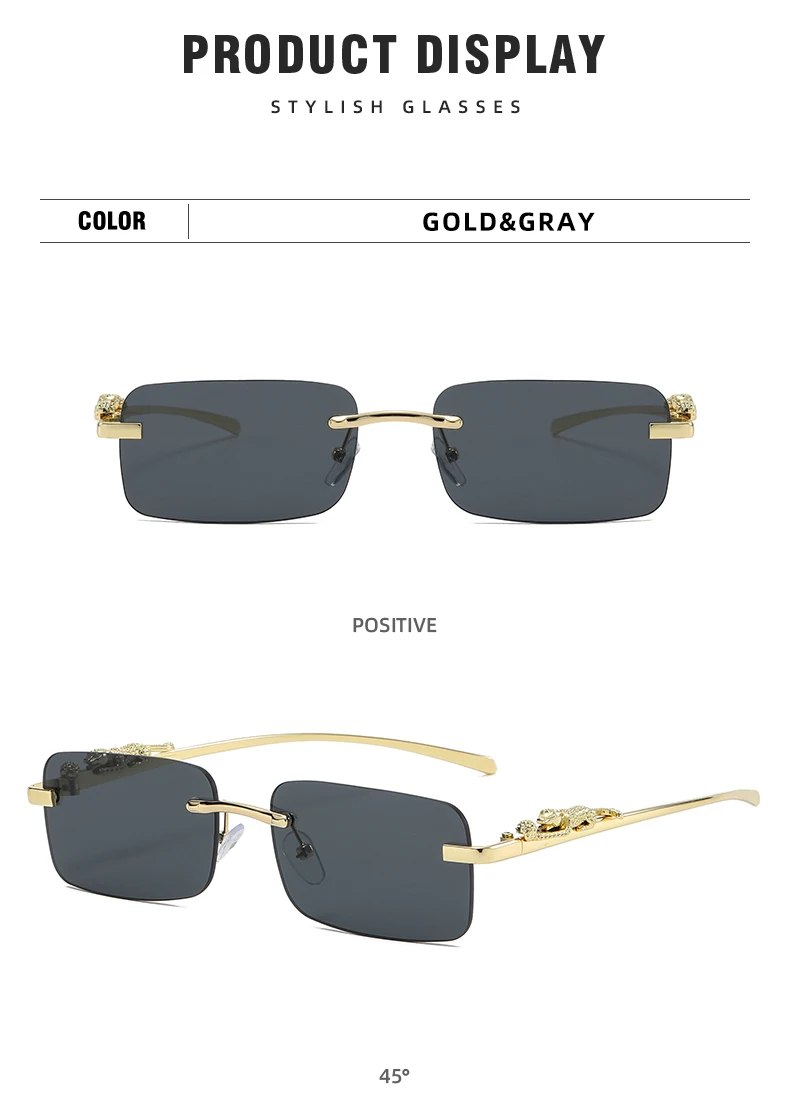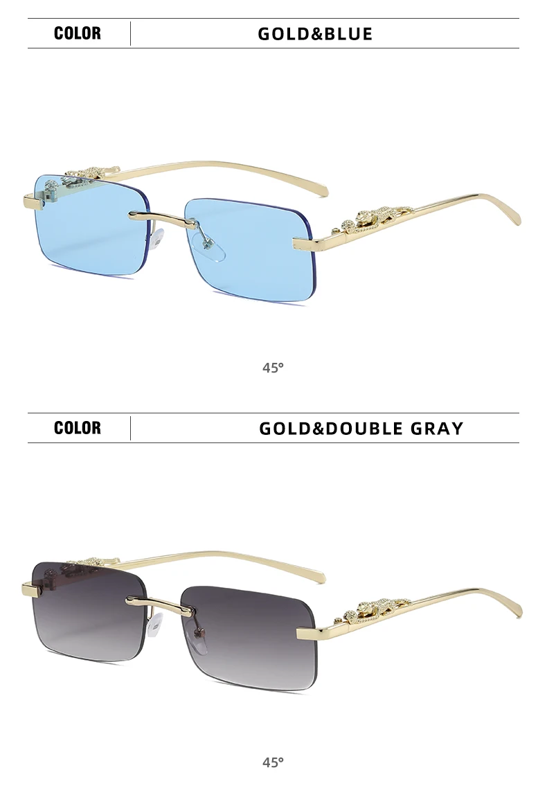 Модные квадратные солнцезащитные очки без оправы для женщин и мужчин, роскошные брендовые дизайнерские Популярные дорожные солнцезащитные очки в металлической оправе с золотым леопардовым принтом