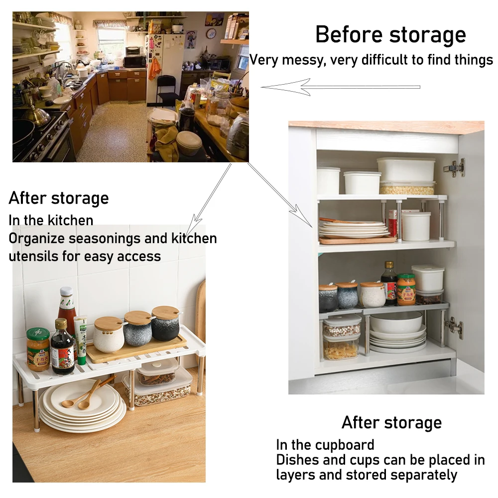 Регулируемая полка для хранения кухонного шкафа, полка для кухни, э...