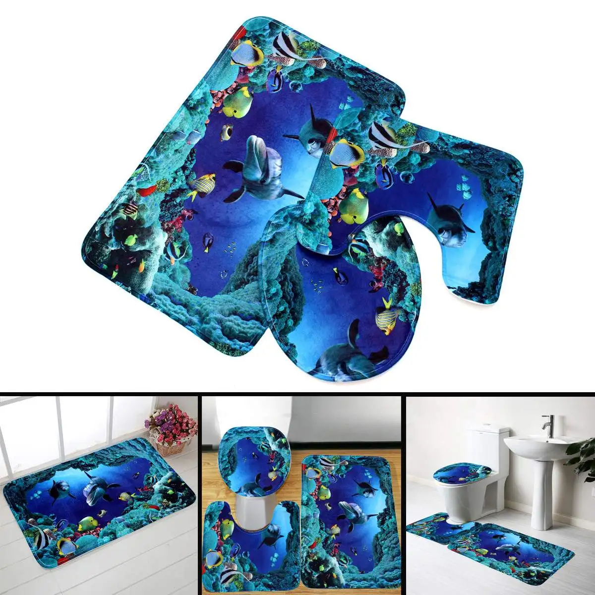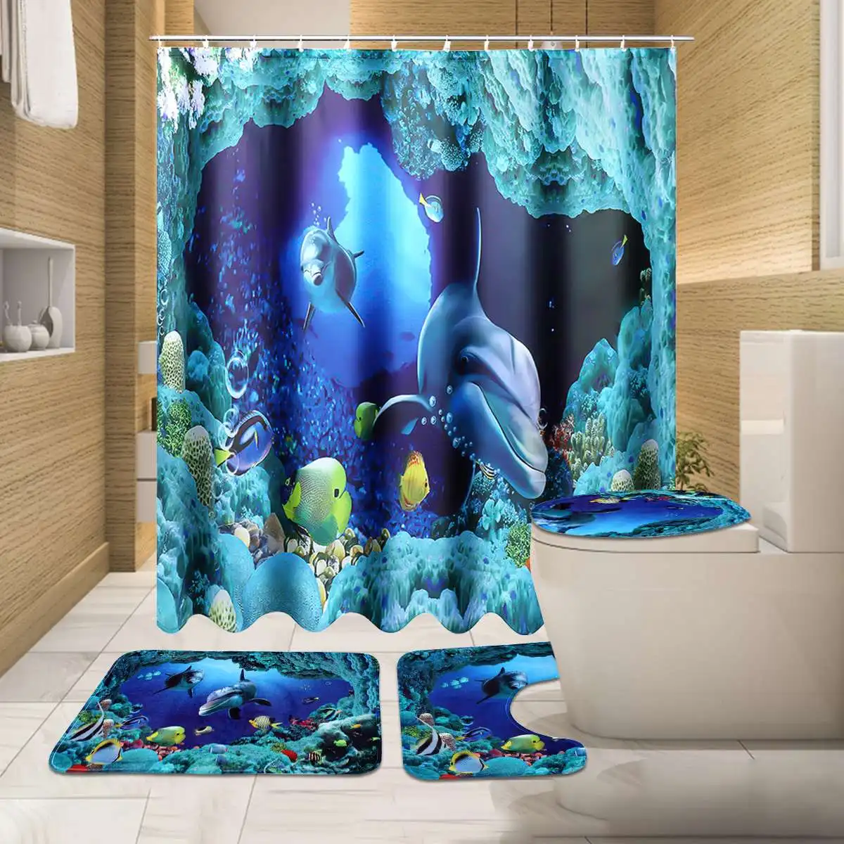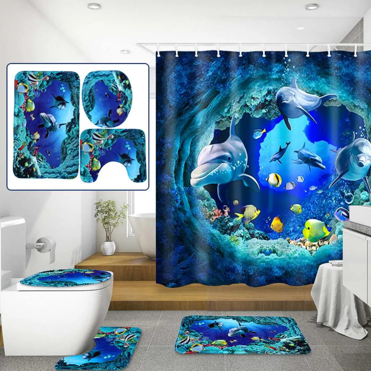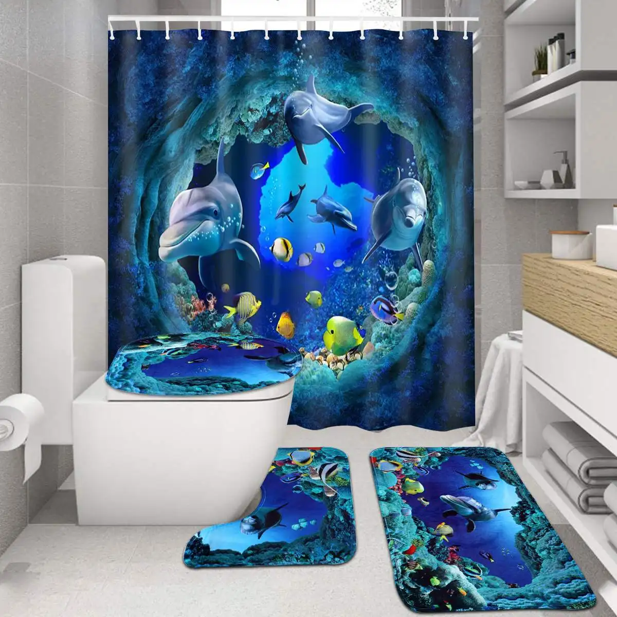 Занавеска для душа с рисунком дельфина, занавеска для ванной, водонепроницаемая занавеска для ванной из полиэстера с крючком, Противоскользящий коврик, тканевый чехол, коврик