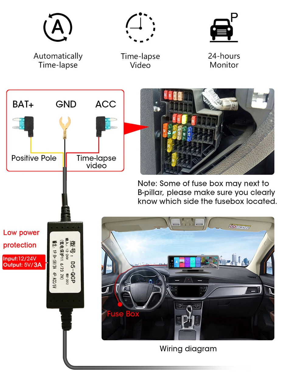 Когда кто-то рядом с вашим автомобилем начинает двигаться, он автоматически включается и начинает запись. Когда появятся какие-либо столкновений будет обнаружено, устройство автоматически записывает в течение нескольких секунд, чтобы обеспечивают 24-часовой охраны парковки.Защита от низкой мощности