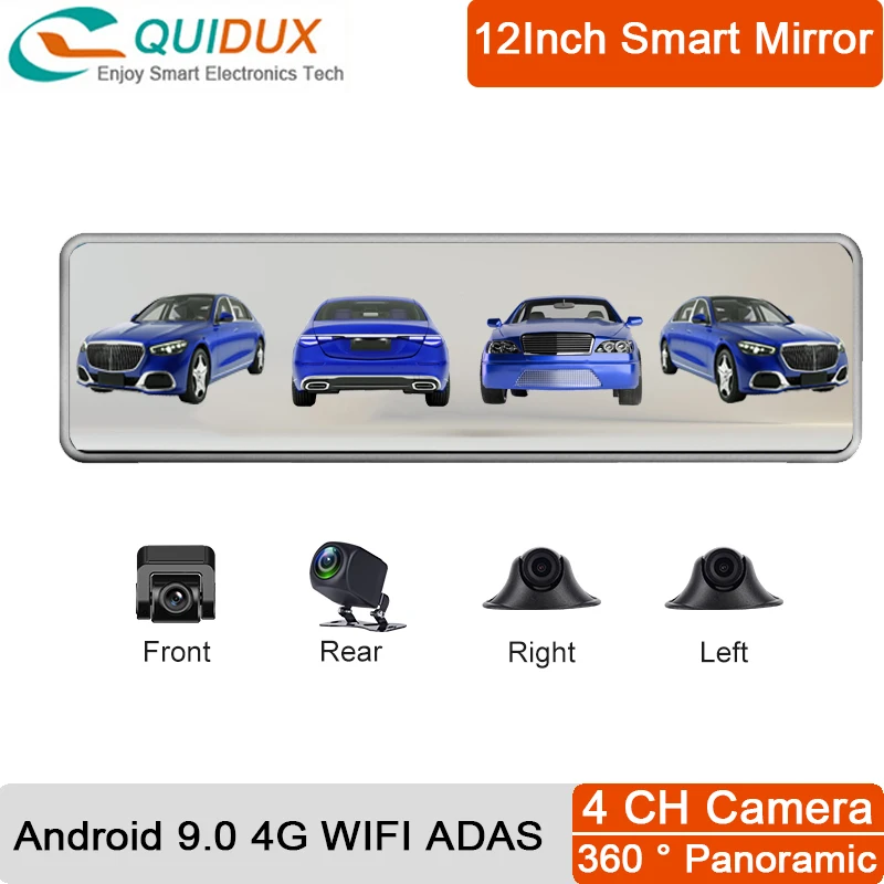 2021 Новый 4 канальный 360 ° панорамный вид Автомобильный видеорегистратор зеркало заднего вида регистратор 12 дюймов Android 9,0 камера заднего вида Dashcam ADAS GPS 4G Wifi приложение