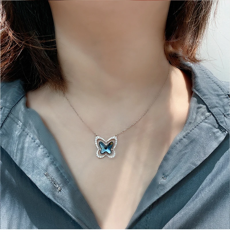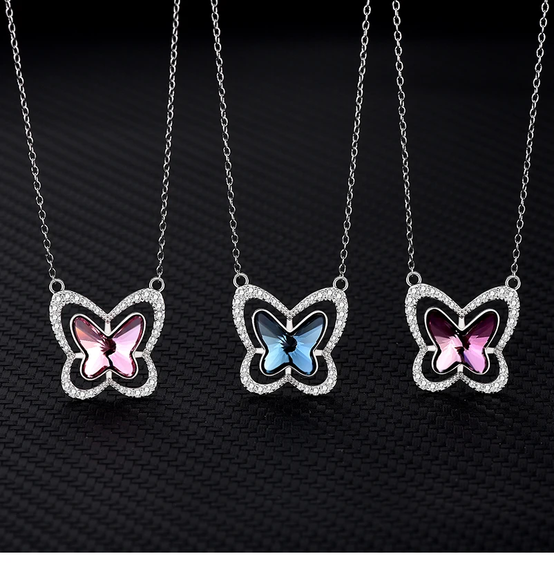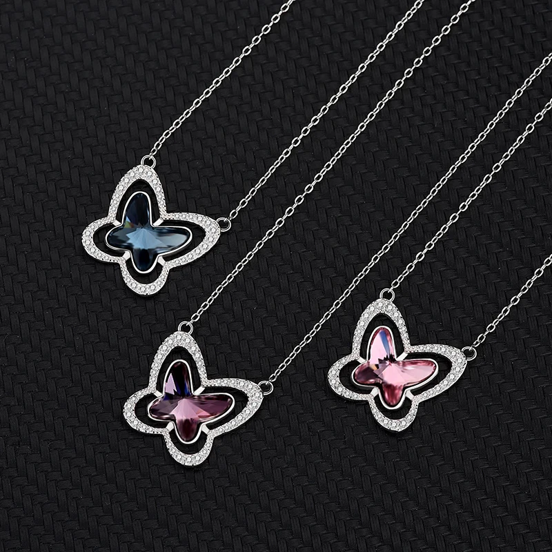 Женское колье из серебра 925 пробы с подвеской-бабочкой