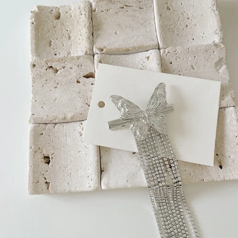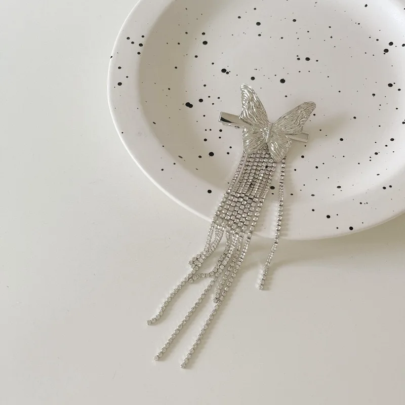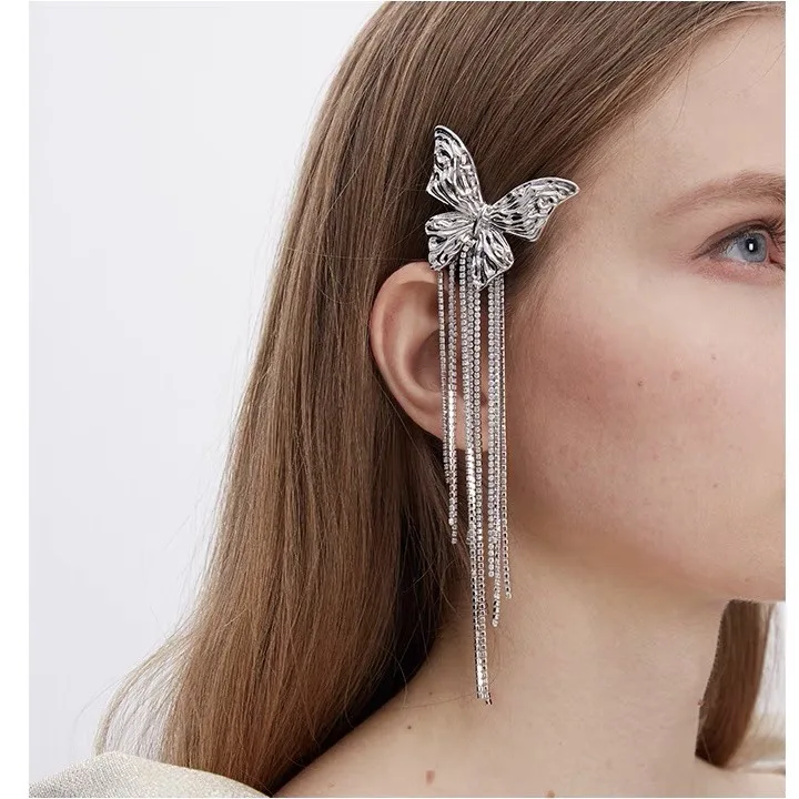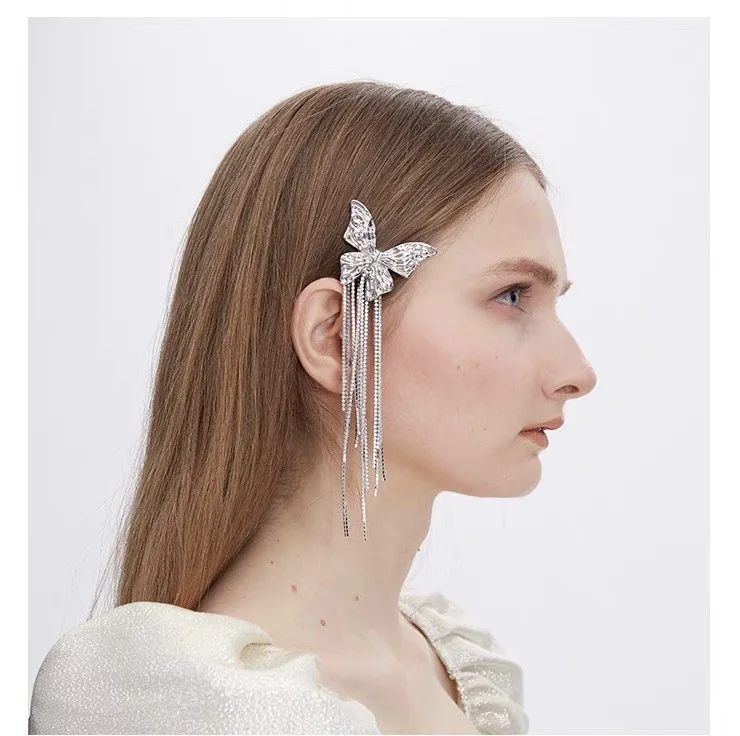 Бабочка светло-голубая кисточка Роскошная шпилька для волос сторона Высокое качество Стразы длинная ниша дизайн персонализированные аксессуары для волос