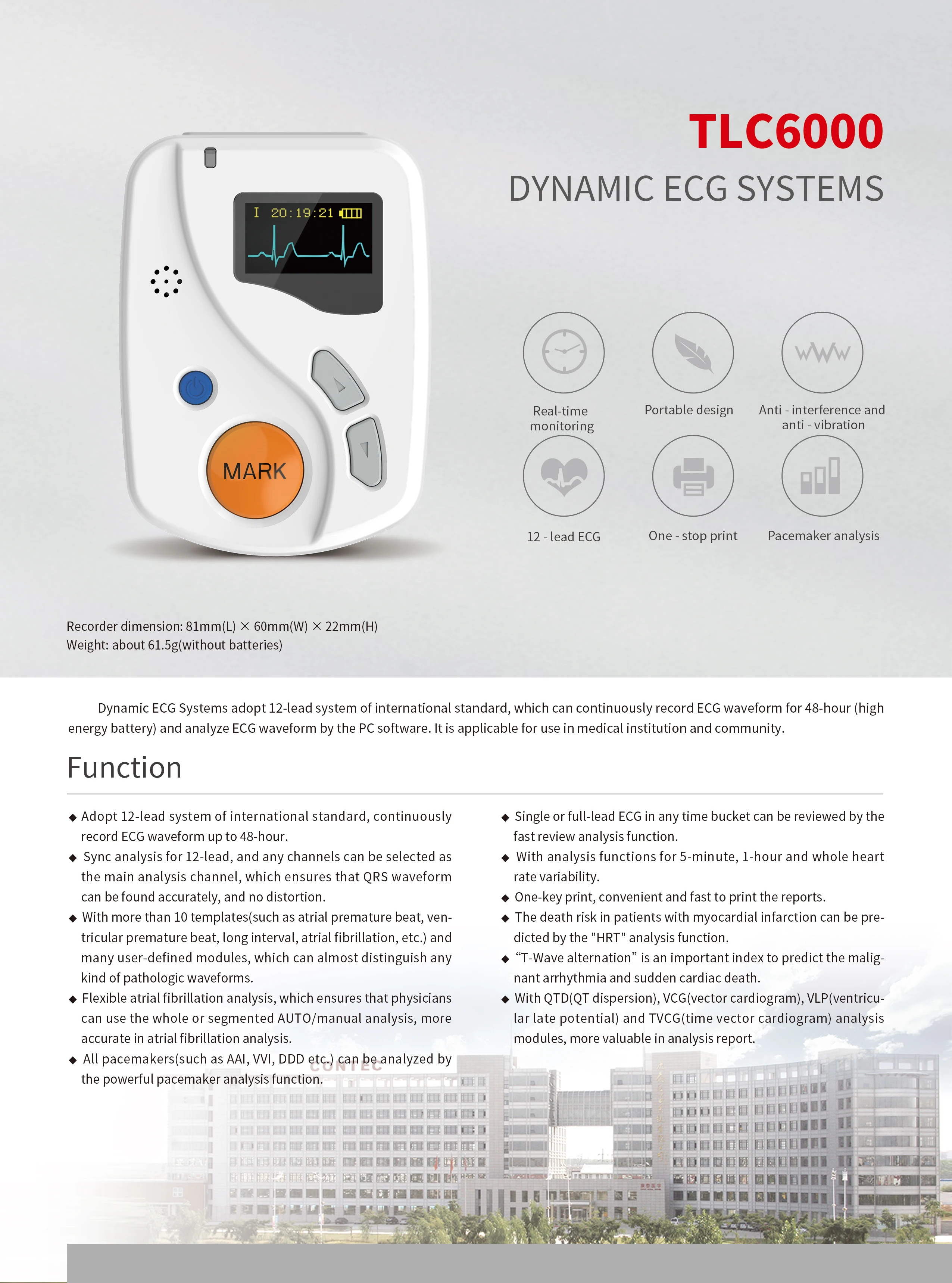 Динамическая система ЭКГ Holter, 12 каналов, 12 выводов, ЭКГ, 48 часов записи и анализа, программное обеспечение для кардиологии TLC6000