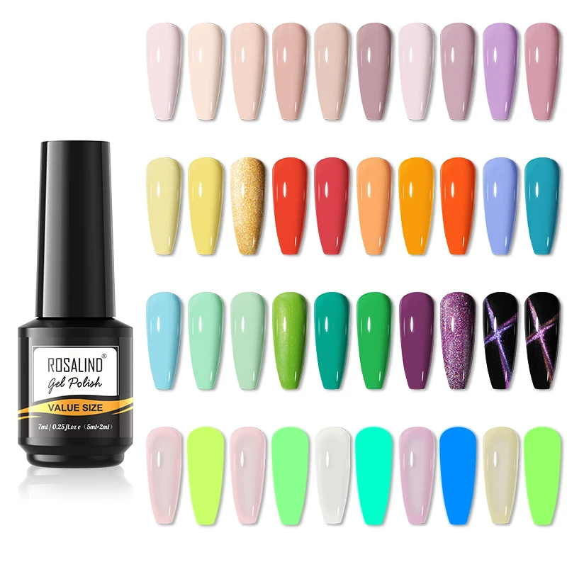 Гель-лак для ногтей ROSALIND, блестящий чистый тонкий Светящийся лак для ногтей, отмачиваемый Гель-лак, Полупостоянный базовый верхний слой