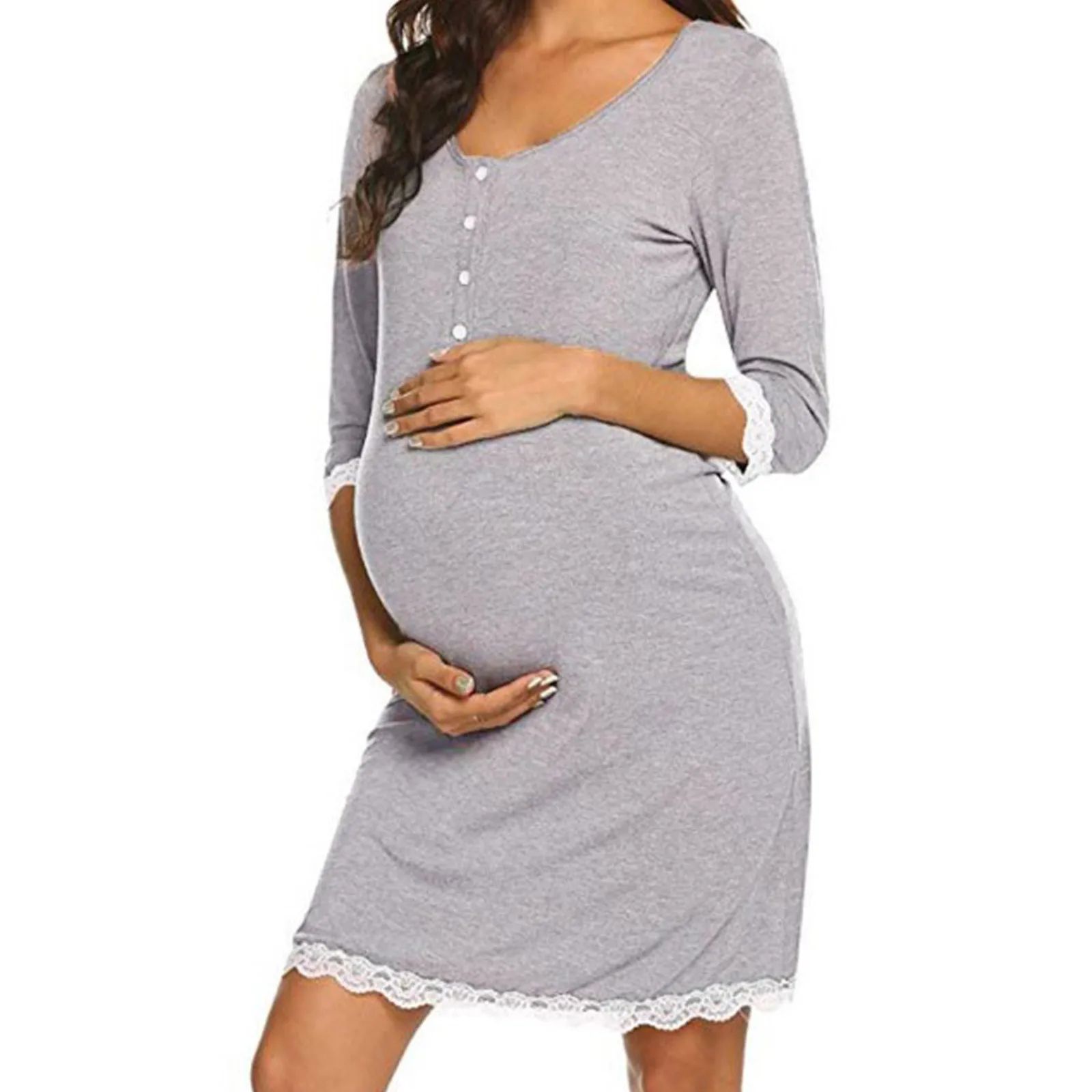 #58 ночная рубашка для беременных женщин одежда с коротким рукавом для кормящих матерей Повседневная кружевная одежда для кормящих матерей ночная рубашка для кормящих матерей