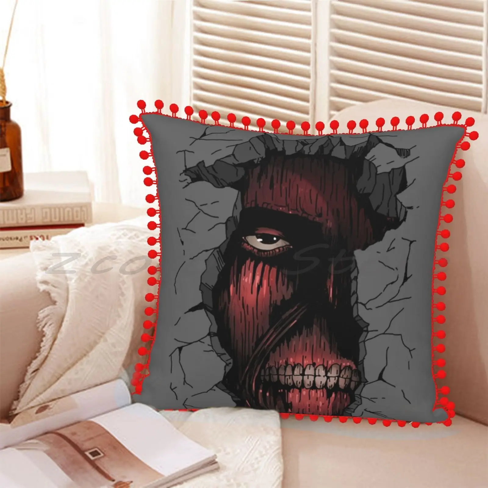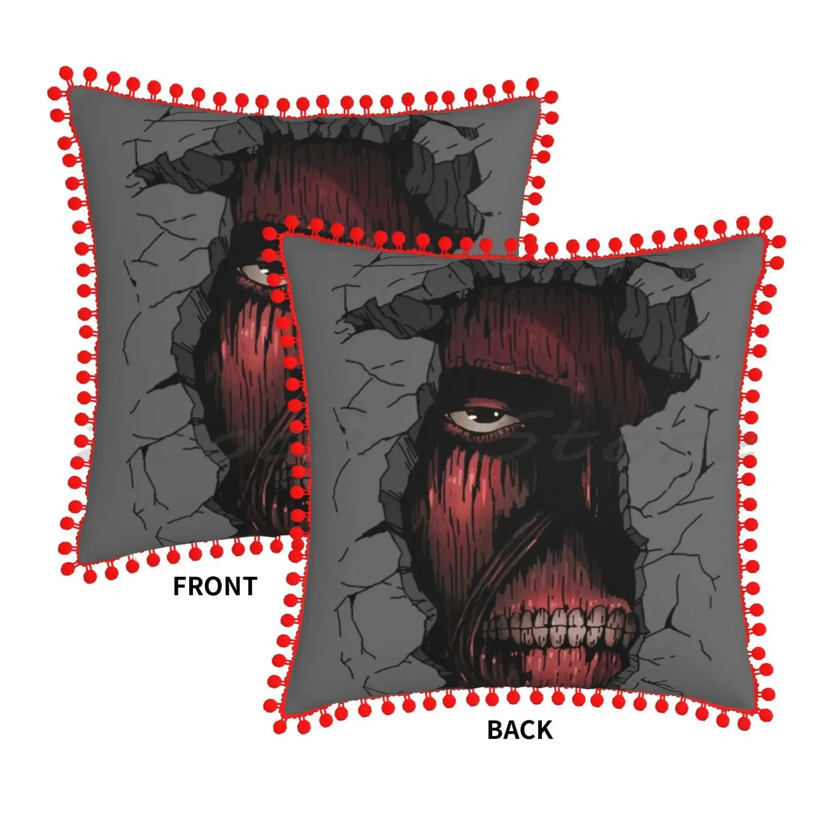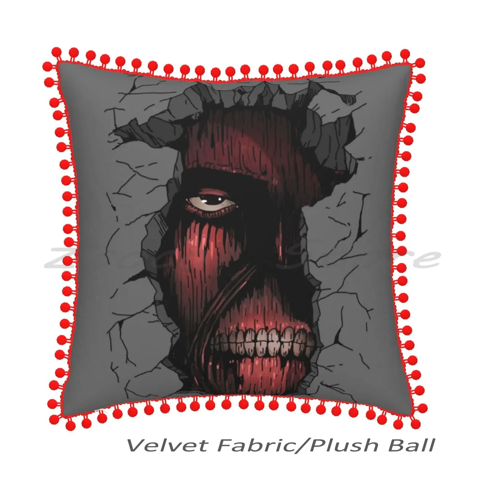 Манга, наволочка, наволочка с надписью, наволочка из хлопка, льна, плюшевый помпон, СНК, голова серия 4