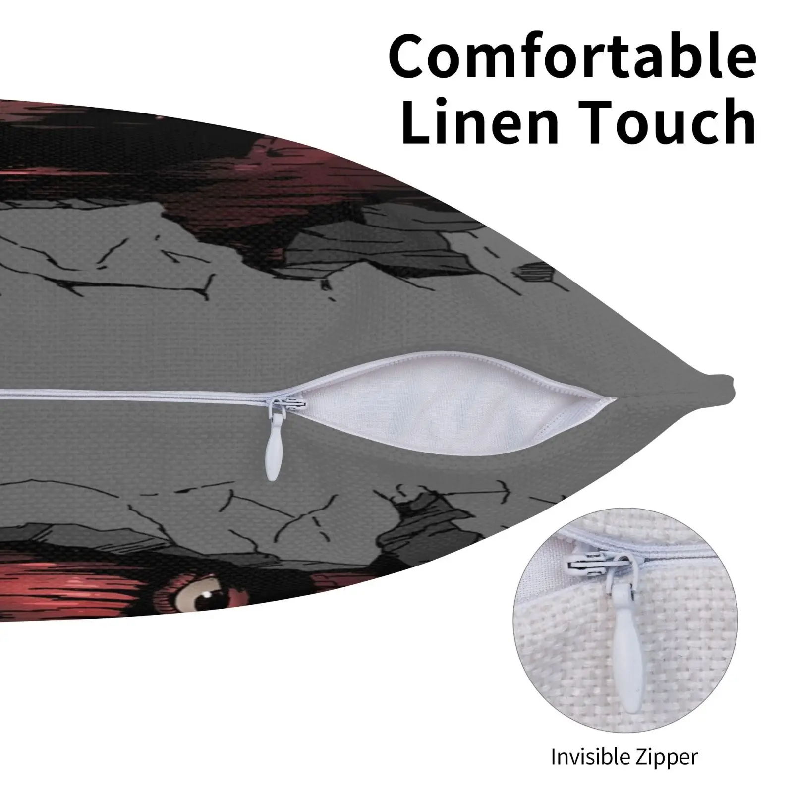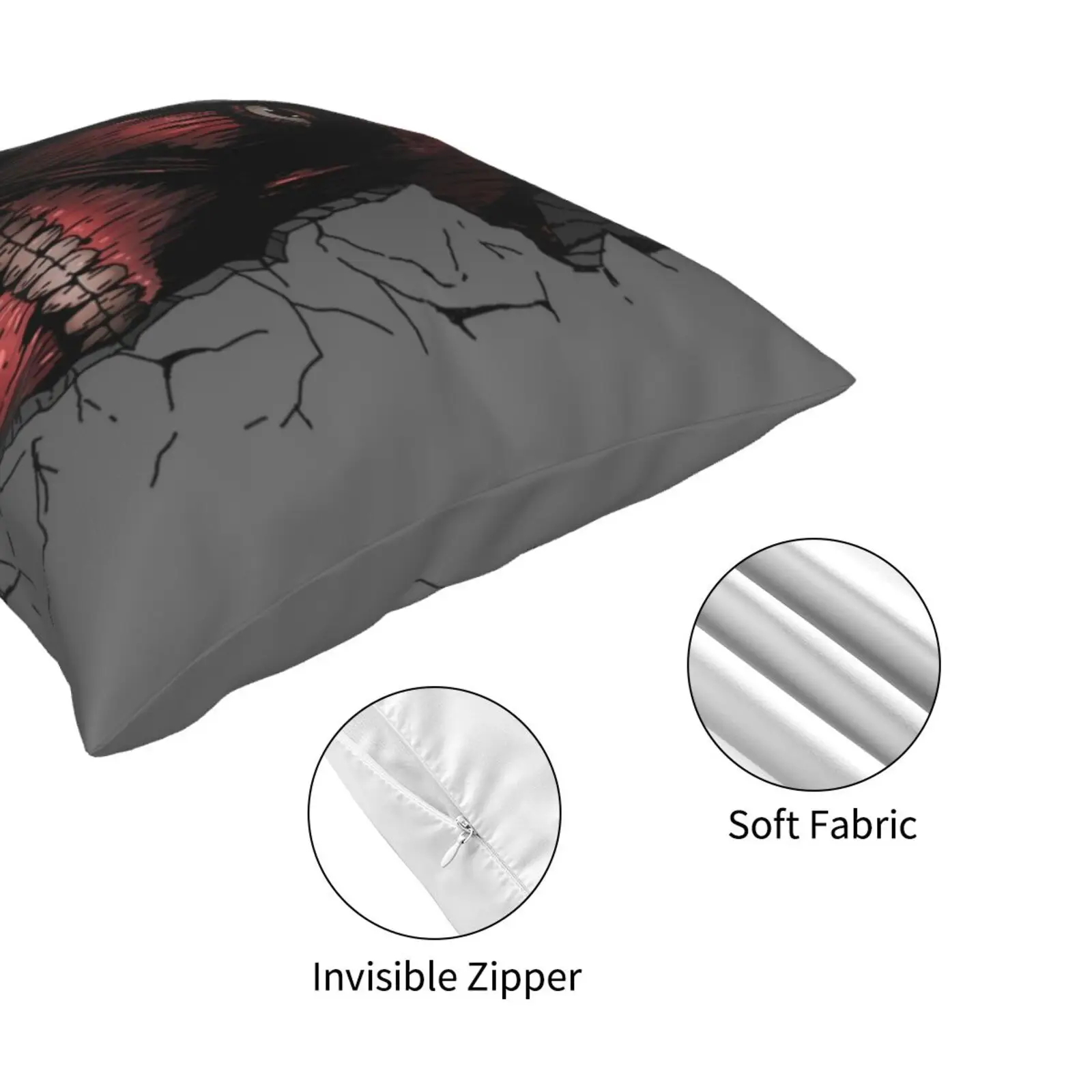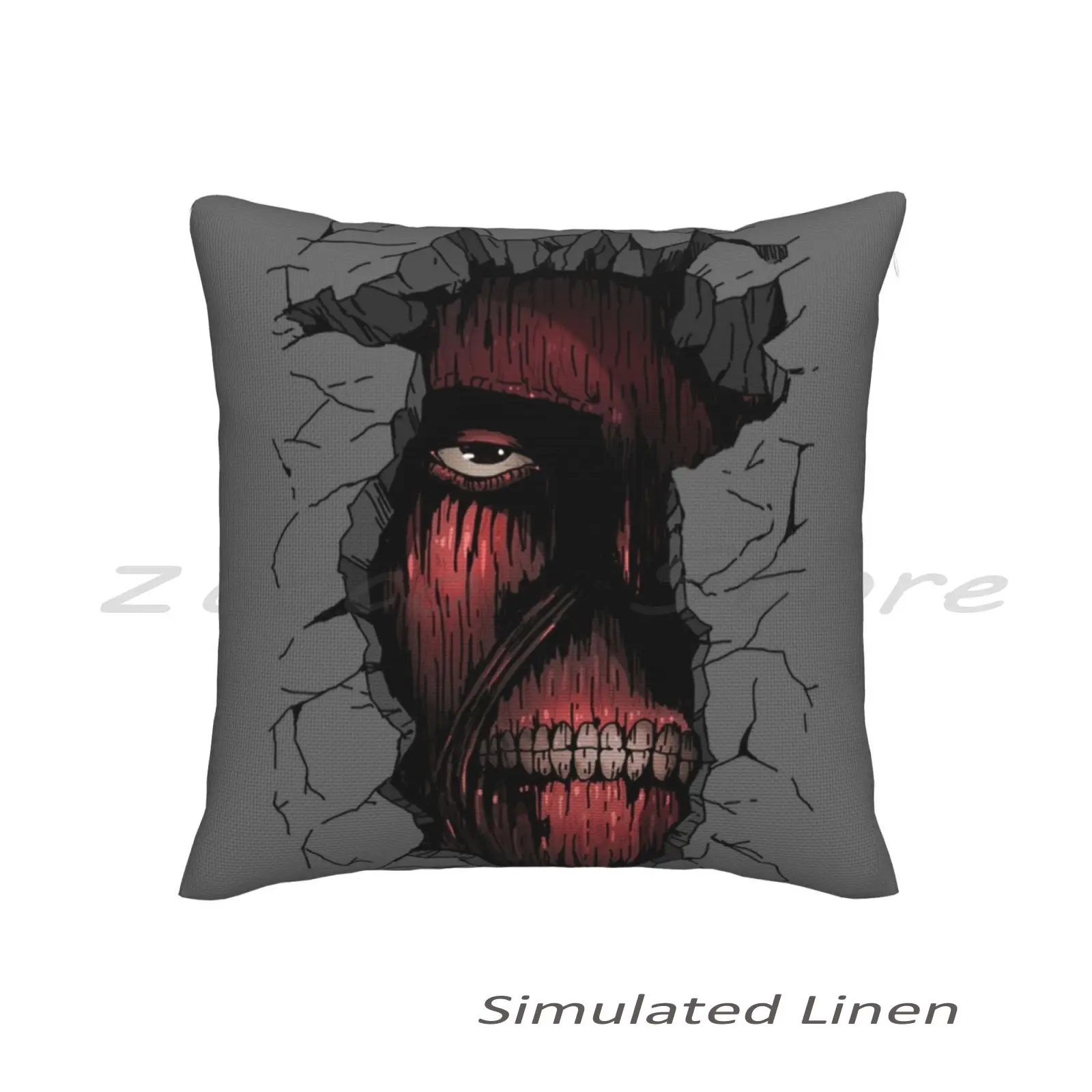 Манга, наволочка, наволочка с надписью, наволочка из хлопка, льна, плюшевый помпон, СНК, голова серия 4