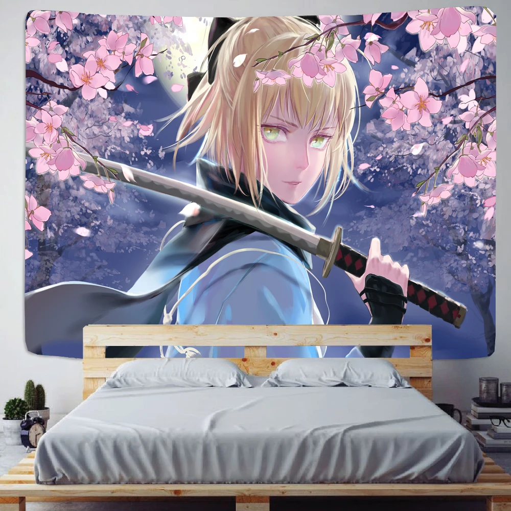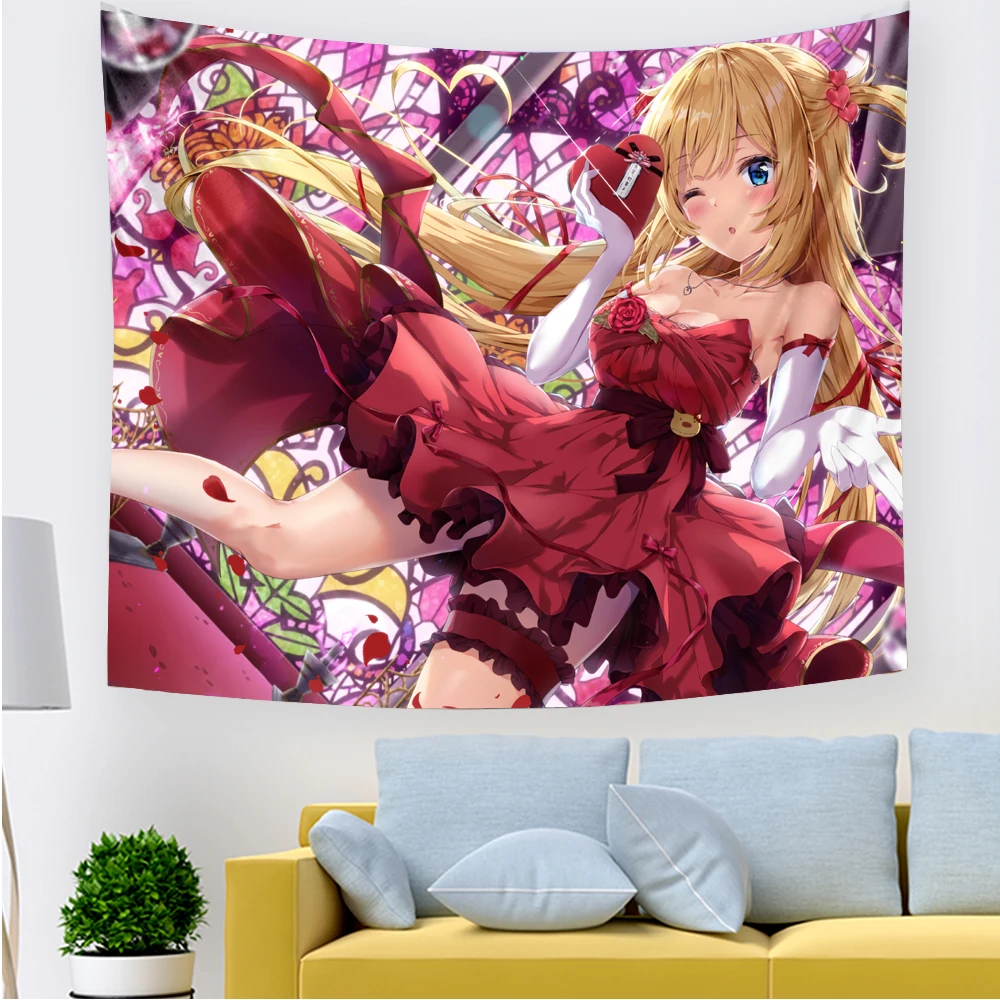 Мультяшный розовый гобелен с принтом девушки, настенный фон для спальни, ткань, кавайный Декоративный Настенный Коврик для йоги, ковер, покрывало для дома