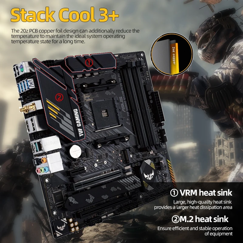 Материнская плата ASUS New TUF GAMING B550M PLUS (Wi-Fi) Micro-ATX B550M DDR4 4600(OC) МГц 128G набор для майнинга AM4 поддержка процессора AMD Ryzen