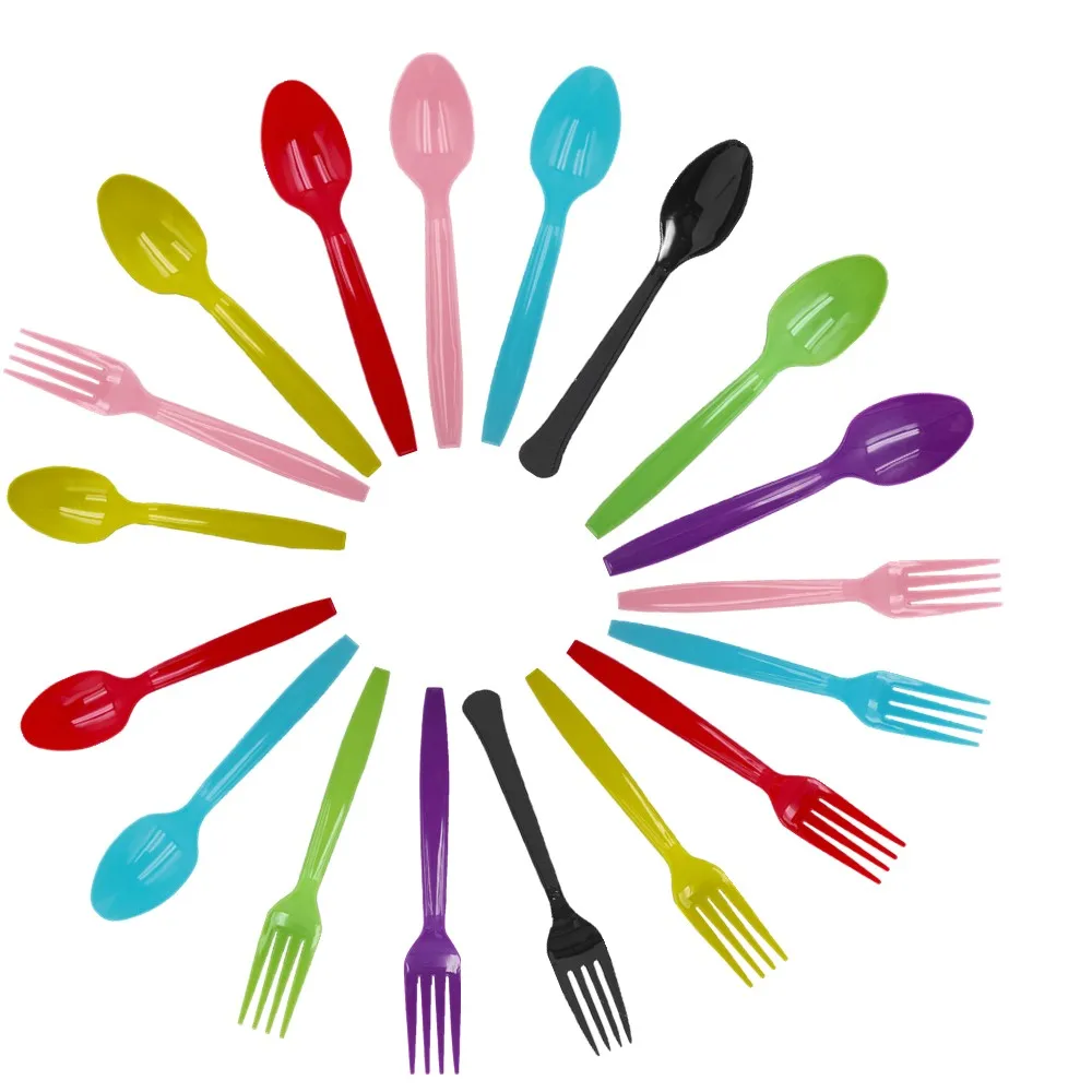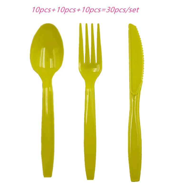 Пластиковые синие, желтые, зеленые, черные, фиолетовые ножи, вилки, ложки, вечерние, одноразовые, столовые приборы, свадебные, Anniversaire, вечерние, Suppli