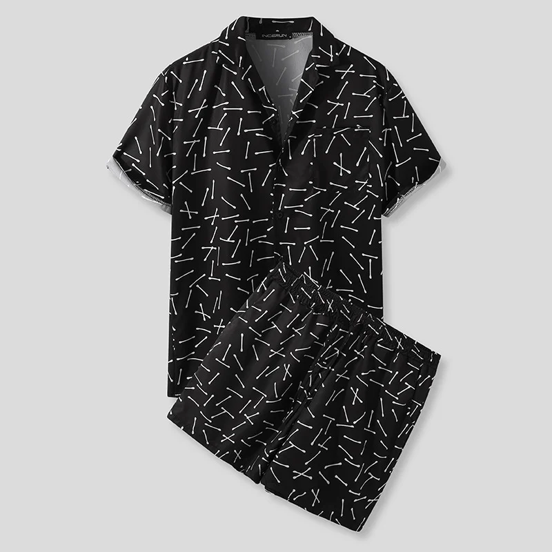 Мужской костюм с принтом, рубашка с воротником на пуговицах и корот...
