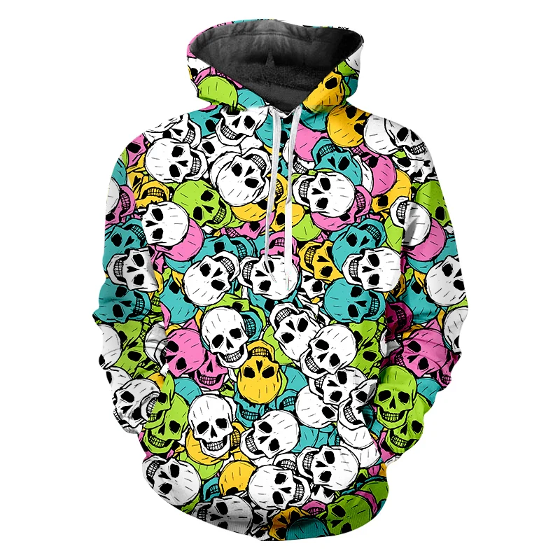 Толстовка мужская с 3D-принтом черепа, повседневный свитшот в стиле хип-хоп, пуловер оверсайз в стиле Харадзюку, с рисунком ужасов, Прямая поставка