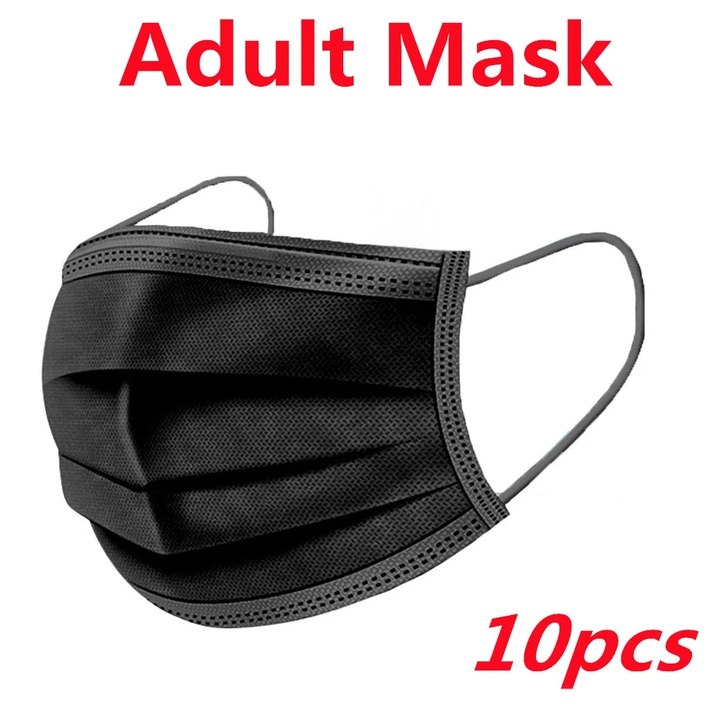 Черная маска для лица одноразовая Защитная маска для рта 3-слойная Нетканая дышащая маска для Носа Маска Для Взрослых Черная маска для лица