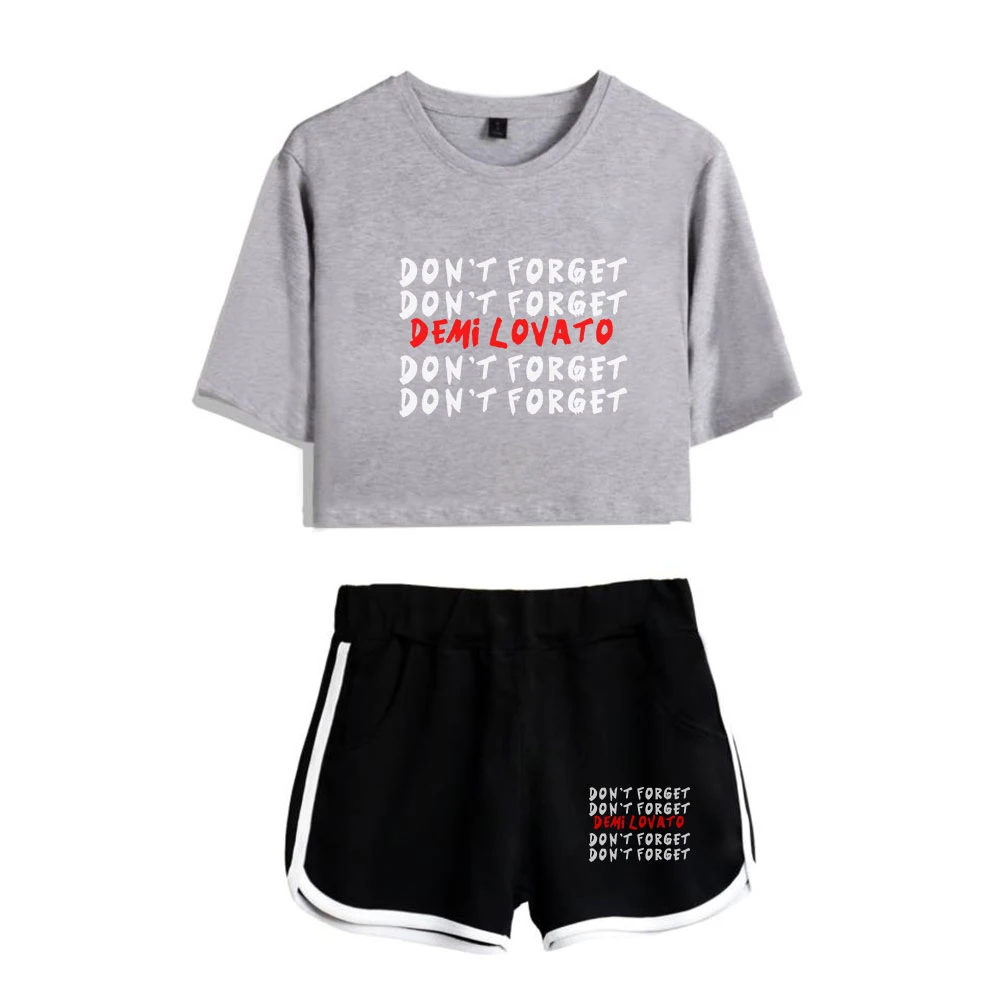 Роскошные футболки с принтом Деми Ловато, шорты, штаны, пупок росы, спортивные костюмы для девочек с коротким рукавом, красивые сексуальные комплекты из двух предметов для девушек
