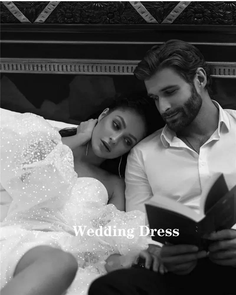 Сексуальные сверкающие блестящие трапециевидные Свадебные платья с пышными рукавами женское современное блестящее белое официальное платье 2022
