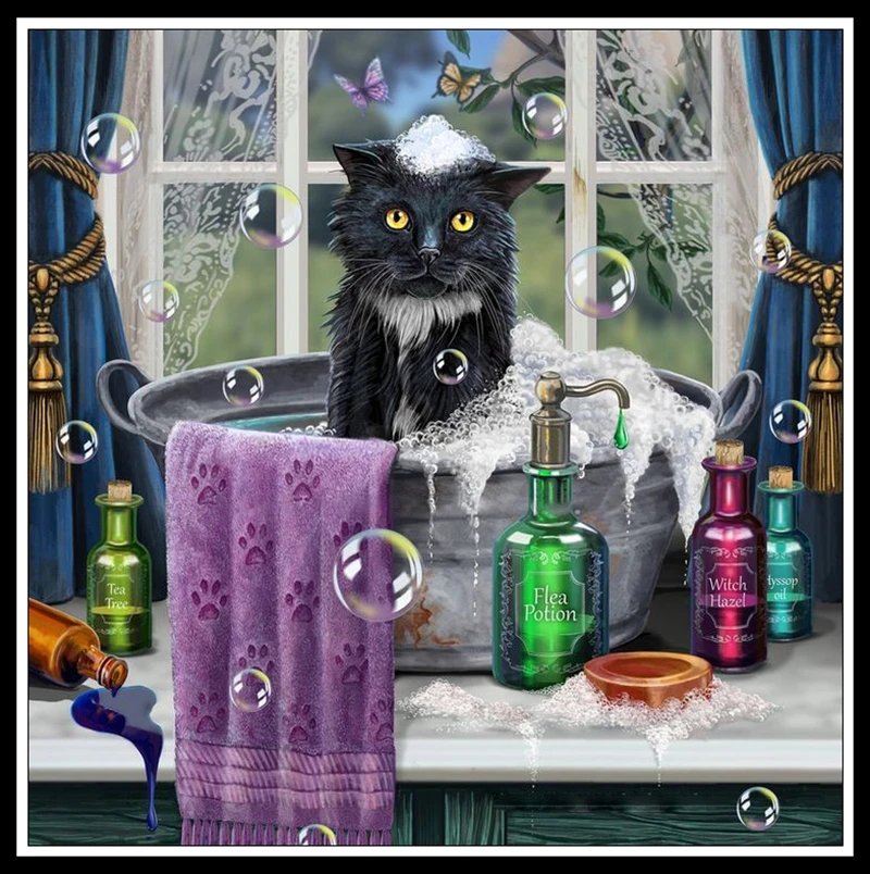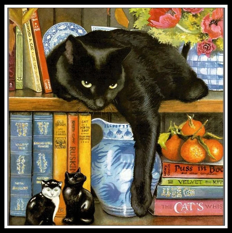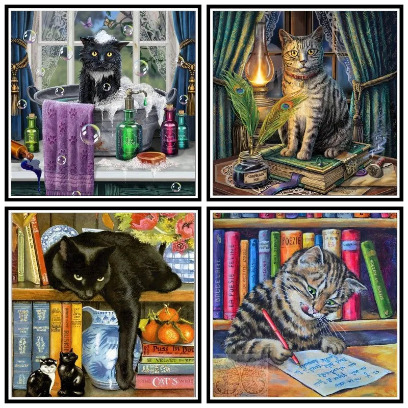 Мозаика 5d сделай сам, элегантная алмазная живопись, кот, дамы с пл...