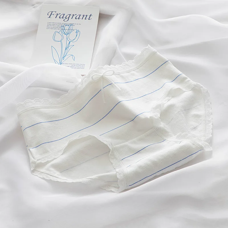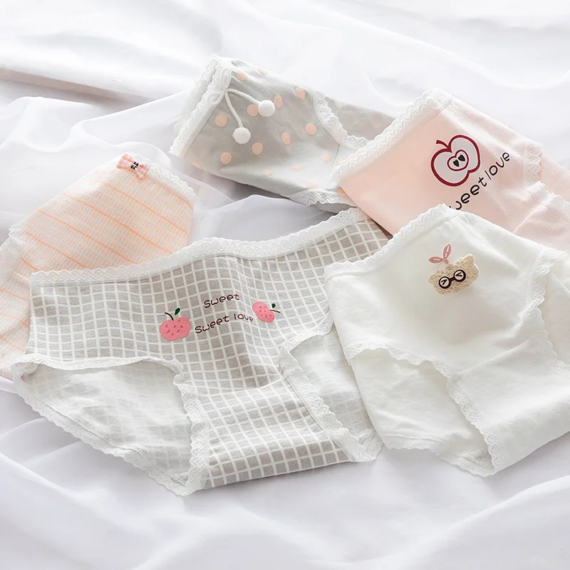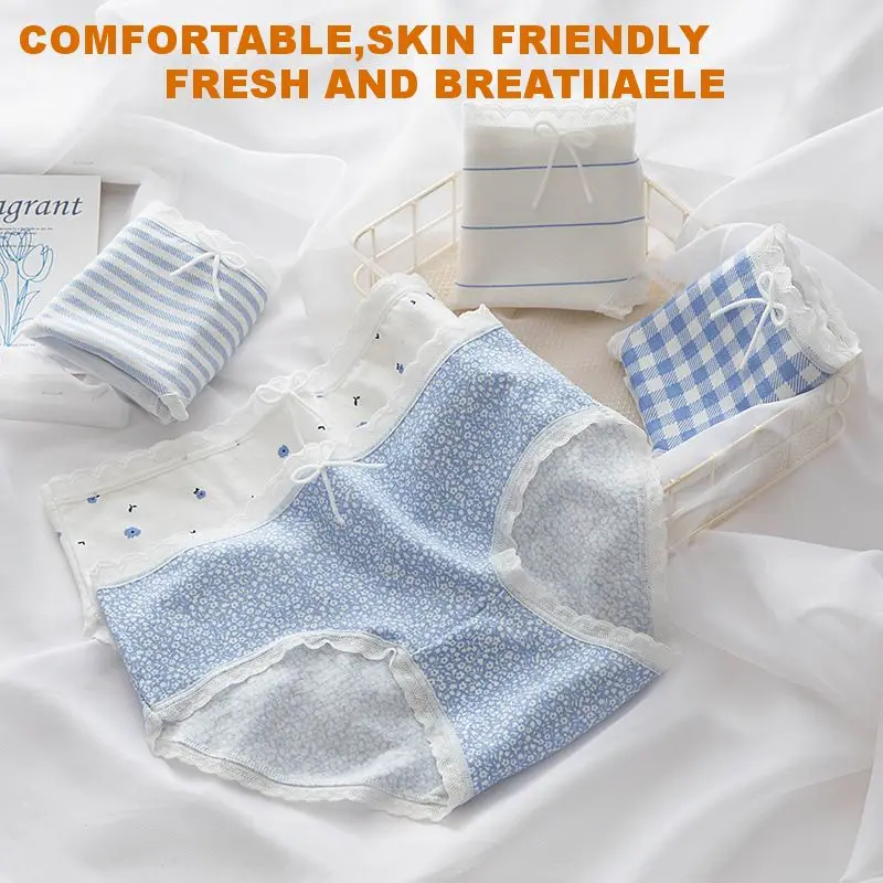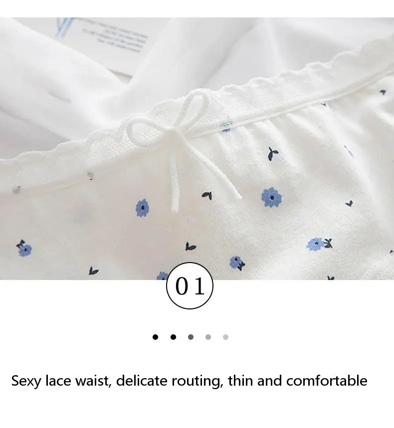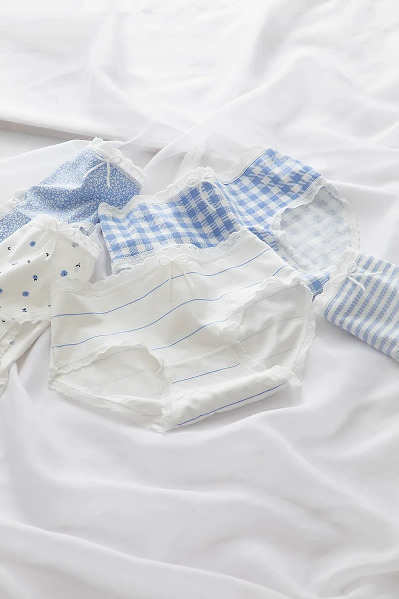 Модное женское нижнее белье Starry Sky Blue 5 шт.компл., женские хлопковые трусики с кружевным бантом и средней талией, трусики для девушек, сексуальные трусики