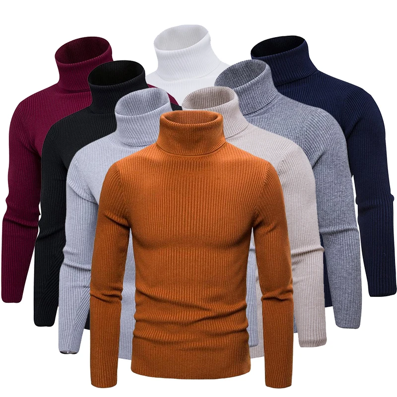 Толстый зимний теплый свитер с высоким воротником, мужские свитеры с высоким воротником, облегающие пуловеры, Мужская трикотажная одежда, мужские топы