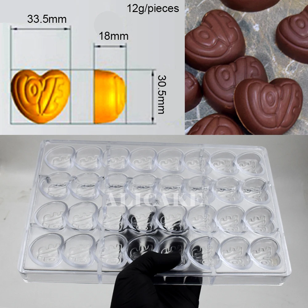 3D поликарбонатные формы для шоколада в форме сердца, инструменты для выпечки кондитерских изделий, формы для шоколада, форма для бонбонбонов на День святого Валентина