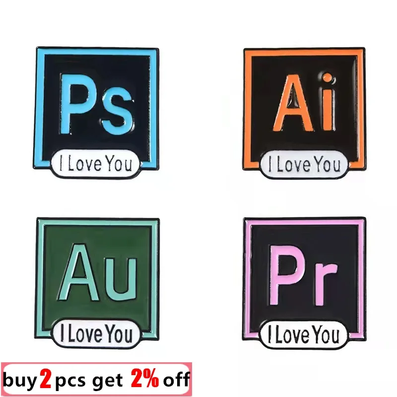 Эмалированные булавки PS AI Pr Au, я люблю тебя, фотошоп, иллюстрат...