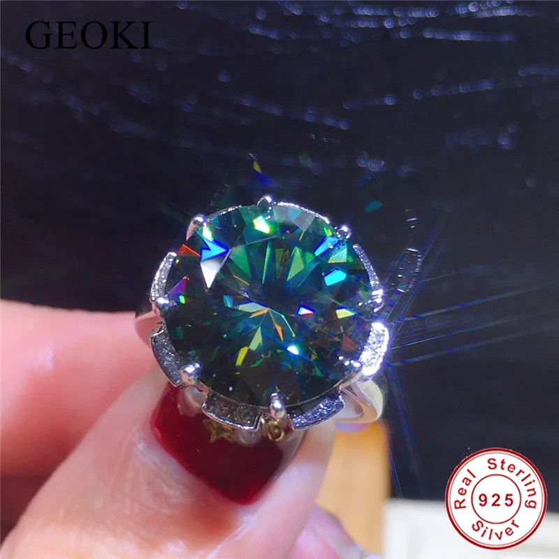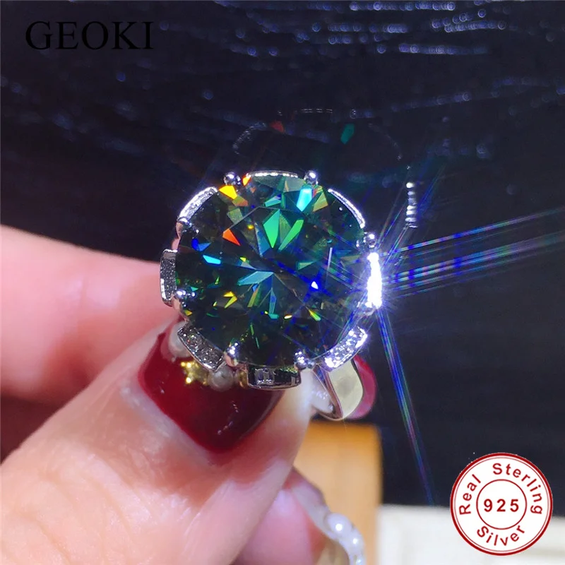 Кольцо Geoki VVS1 с муассанитом, роскошное ювелирное изделие с драгоценной камнем 8 карат, цвет голубой зеленый, цвет серебро