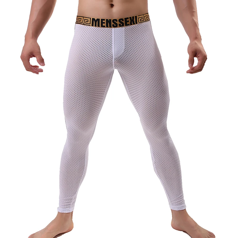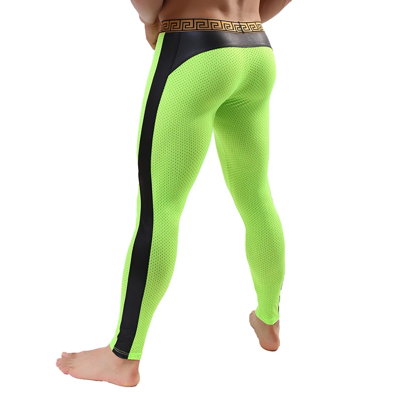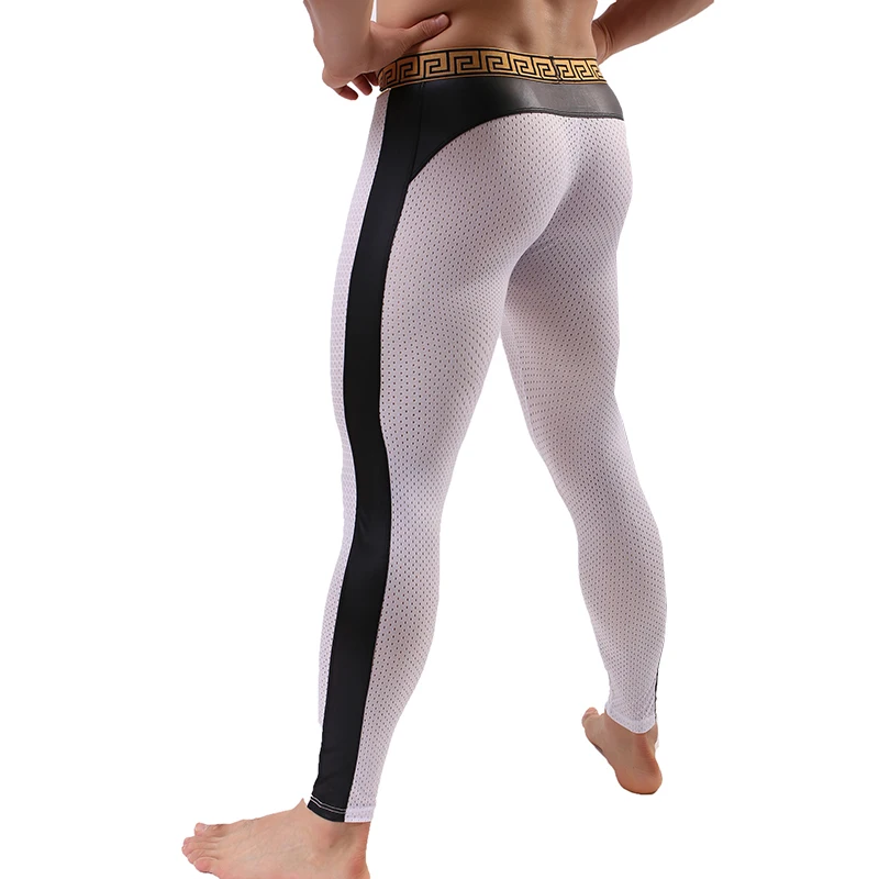 Мужские штаны для сна, сетчатые дышащие Бесшовные спортивные обтягивающие леггинсы из искусственной кожи, сексуальные легкие брюки, нижнее белье для фитнеса