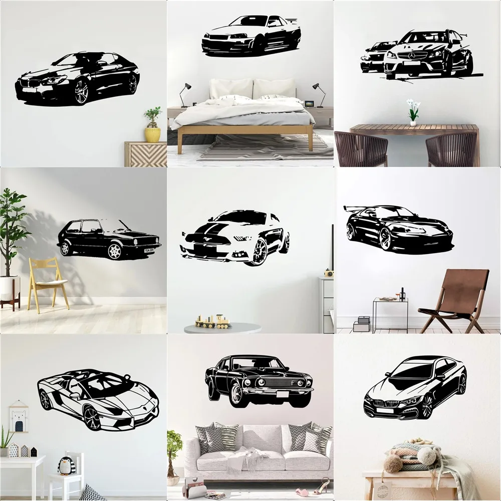 Современная модная спортивная Автомобильная виниловая наклейка на стену автомобили настенное искусство для детской комнаты гостиная украшение для спальни