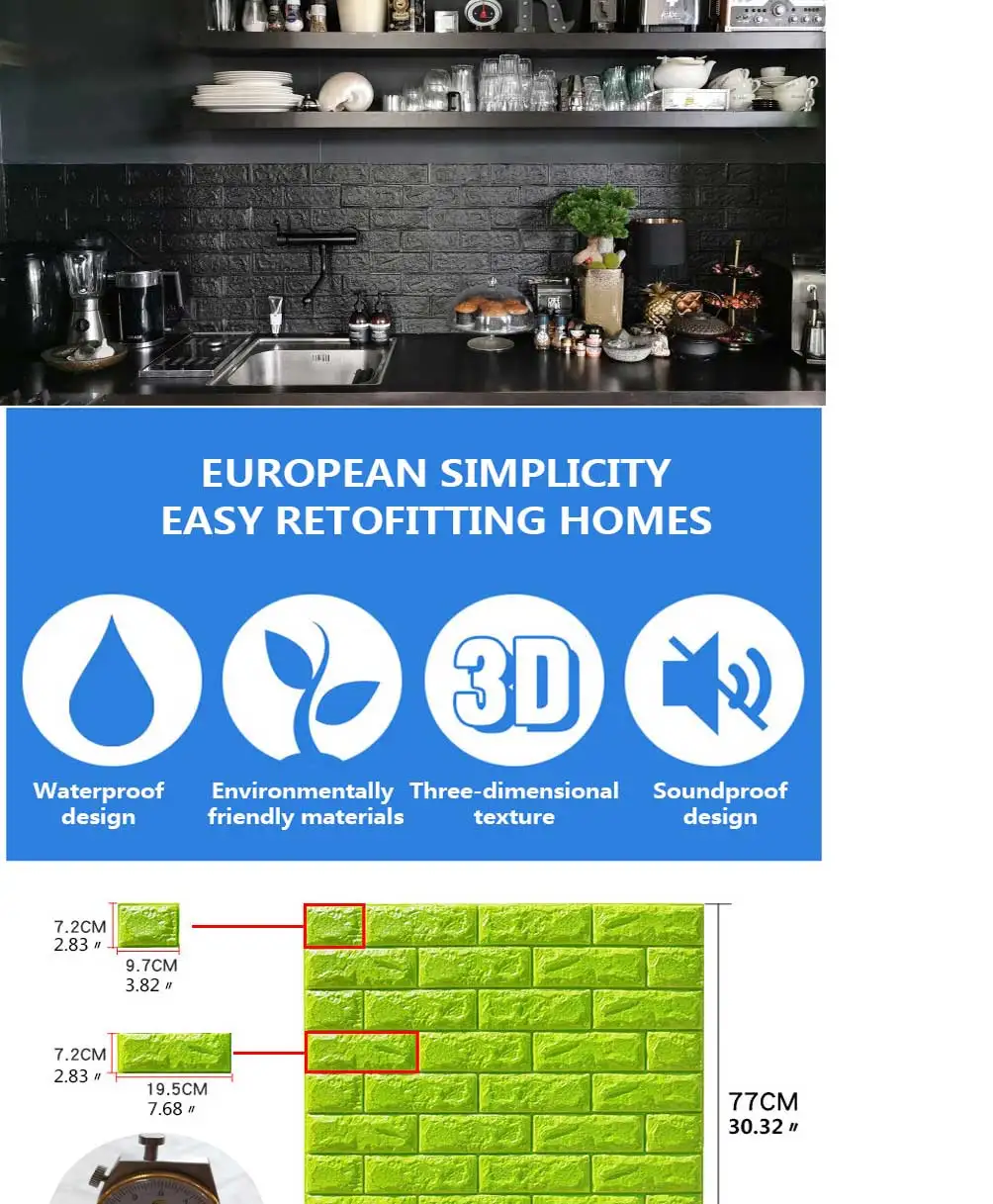 70*77 3D кирпичные настенные наклейки, самоклеящиеся пенополиэтилен...