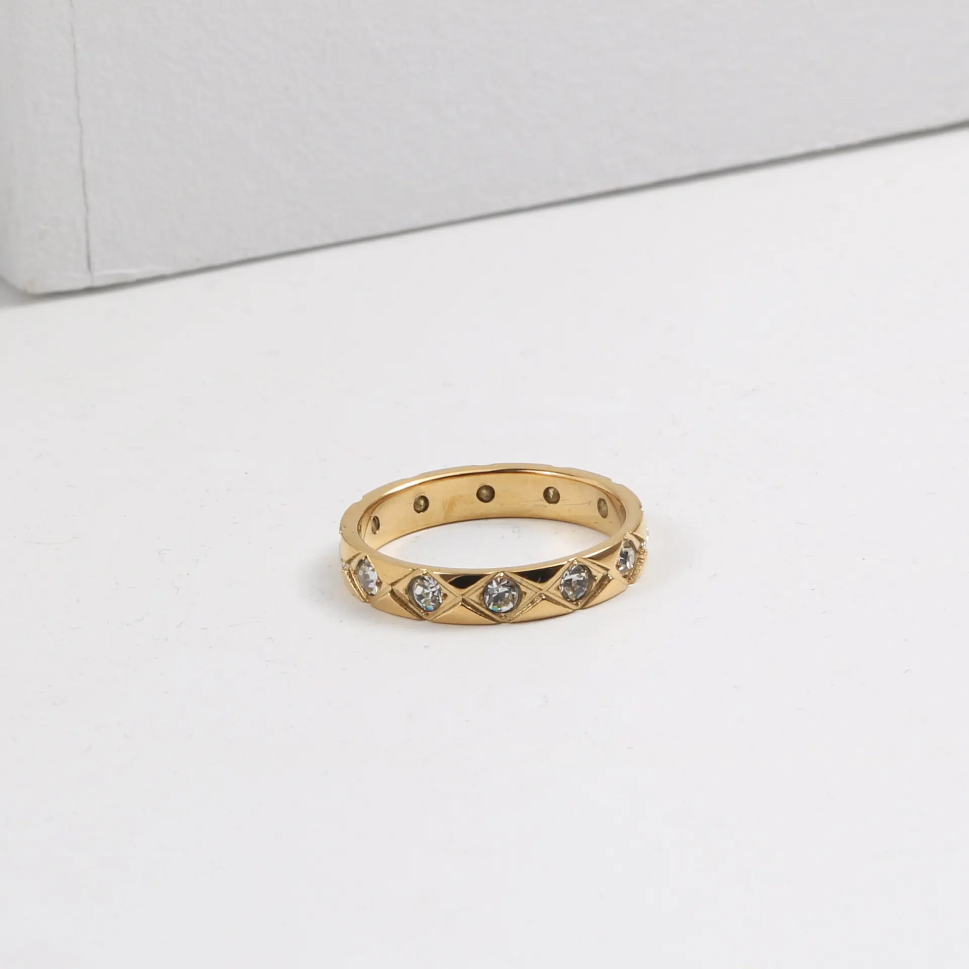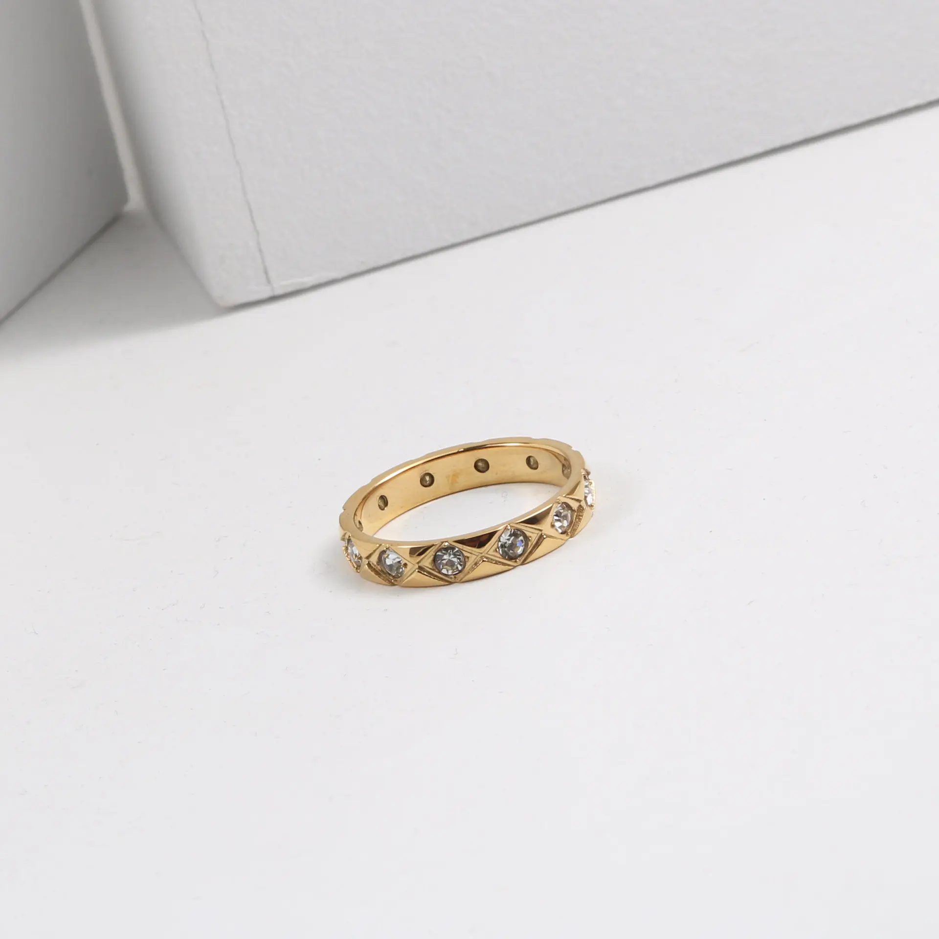 Joolim высокого класса 18K Золото PVD водонепроницаемый ромб с Цирконом кольца для женщин ювелирные изделия из нержавеющей стали оптом