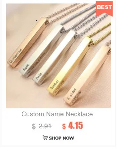 Пользовательское имя ожерелье Бесплатная гравировка четыре стороны персонализированный квадратный бар кулон из нержавеющей стали подарок для женщин и мужчин